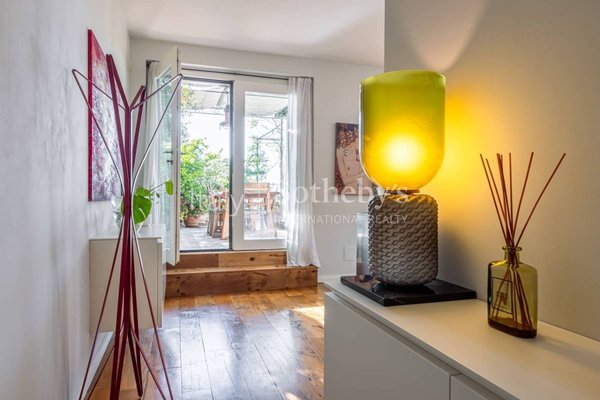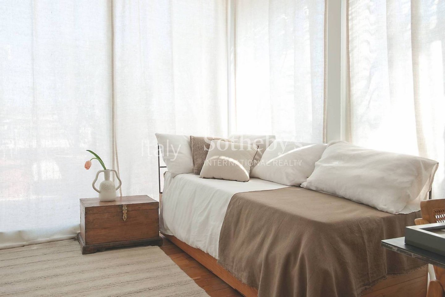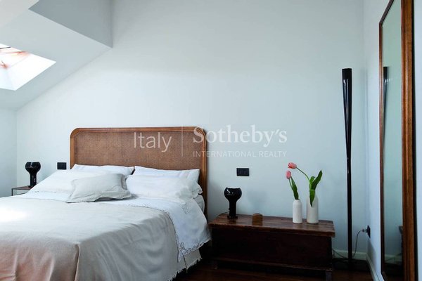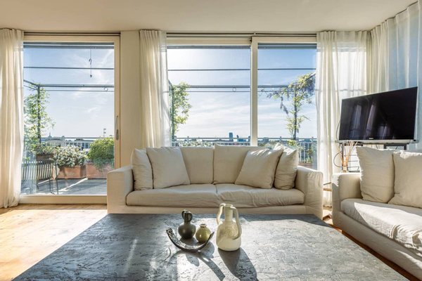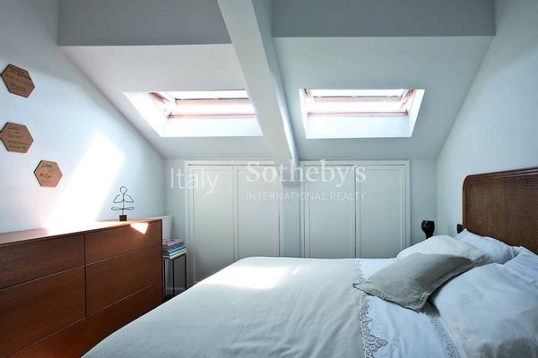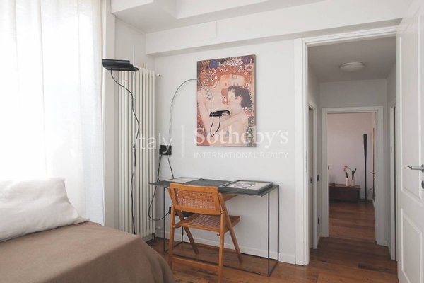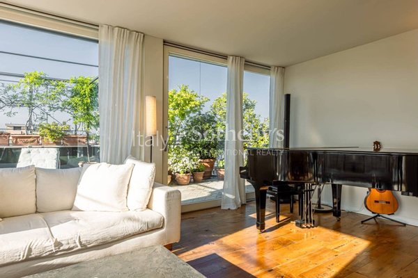 Set on the ninth floor of an elegant building with lift and concierge service, this 110 sqm penthouse apartment enjoys a bright and private position within a well-connected residential area of Milan.