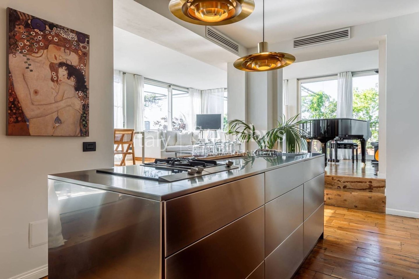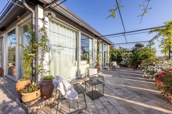 Set on the ninth floor of an elegant building with lift and concierge service, this 110 sqm penthouse apartment enjoys a bright and private position within a well-connected residential area of Milan.The property is entirely surround