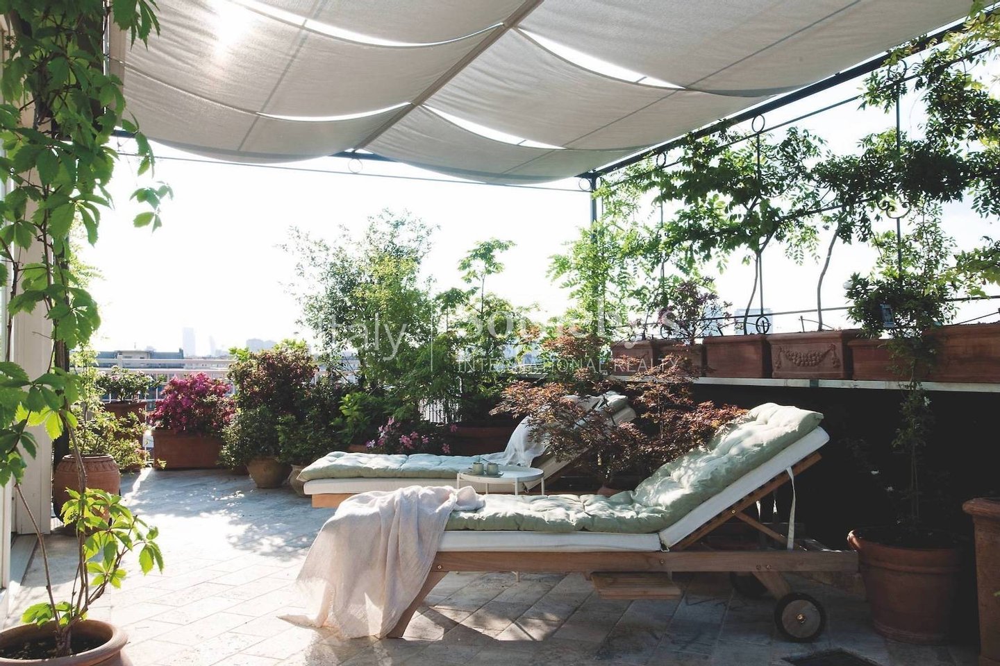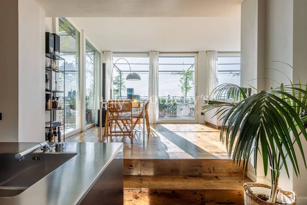 The property is entirely surrounded by a remarkable 120 sqm furnished terrace, offering open views across the city skyline. The triple exposure to the east, north and west fills the interiors with natural light throughout the day and creates a seamless connection between indoor and outdoor living.