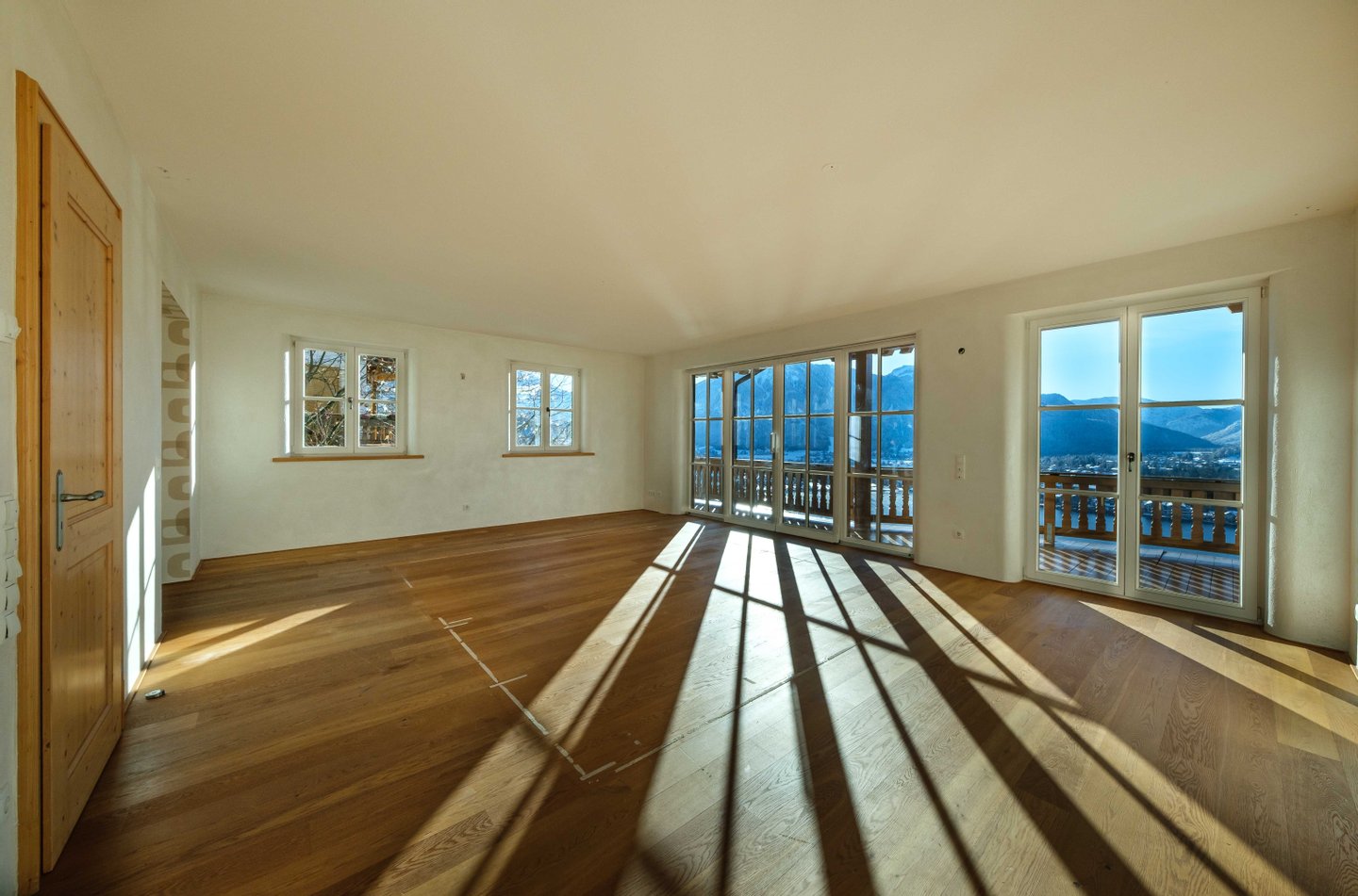 Großzügige Balkone nach Süden und Westen bieten ganztägig Sonne und einen beeindruckenden Blick über See und Bergwelt – ein Panorama, das 365 Tage im Jahr überzeugt. Helle Räume und ein Gefühl von Weite prägen das Wohnambiente, während