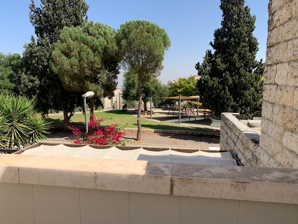 Renovierte, großzügige Wohnung mit großem, hellem Wohnzimmer, das zu einem riesigen Balkon führt, 3 Luftzonen und 2 Sukka-Balkonen (einer riesig) mit freiem Ausblick.