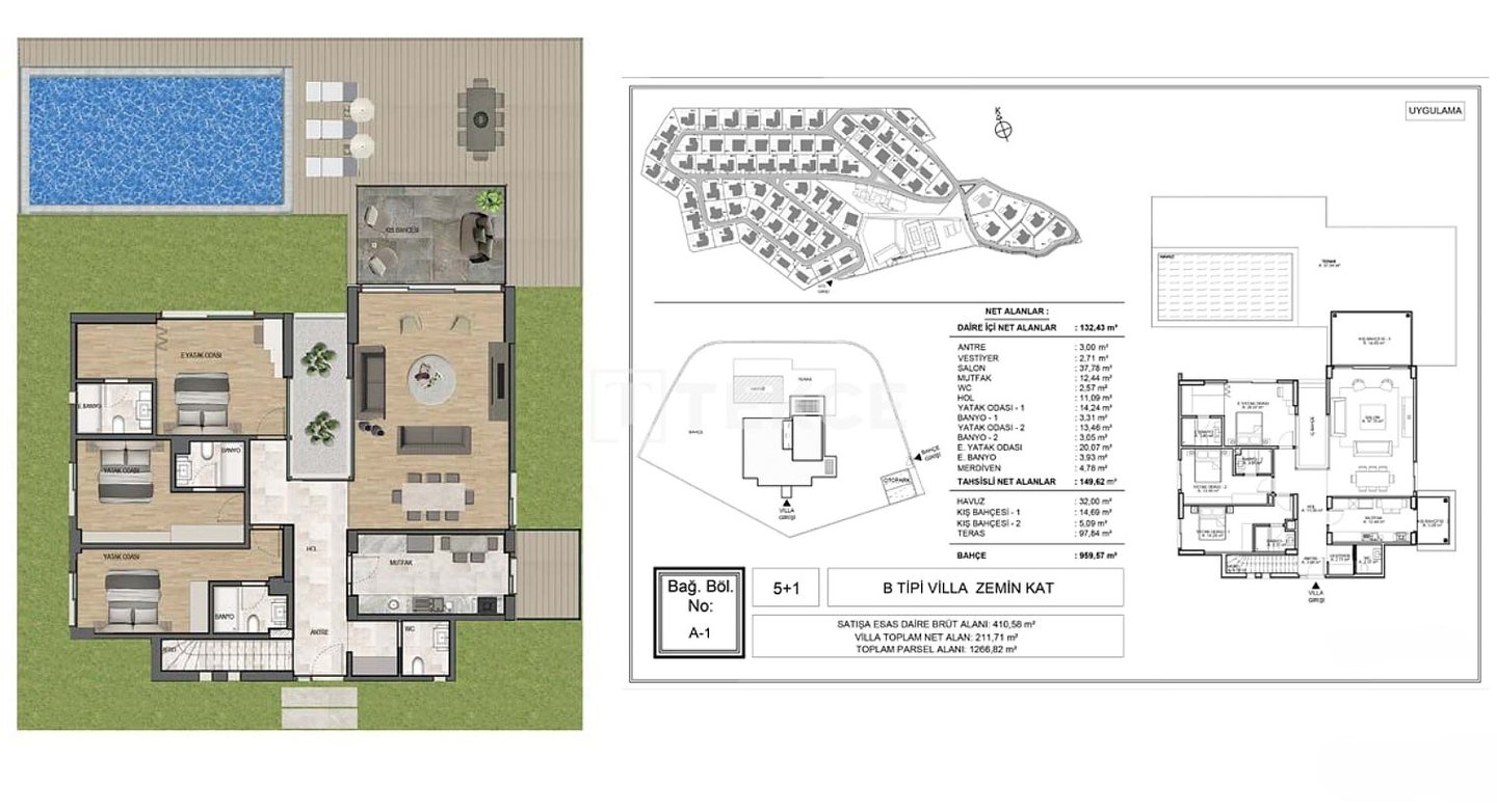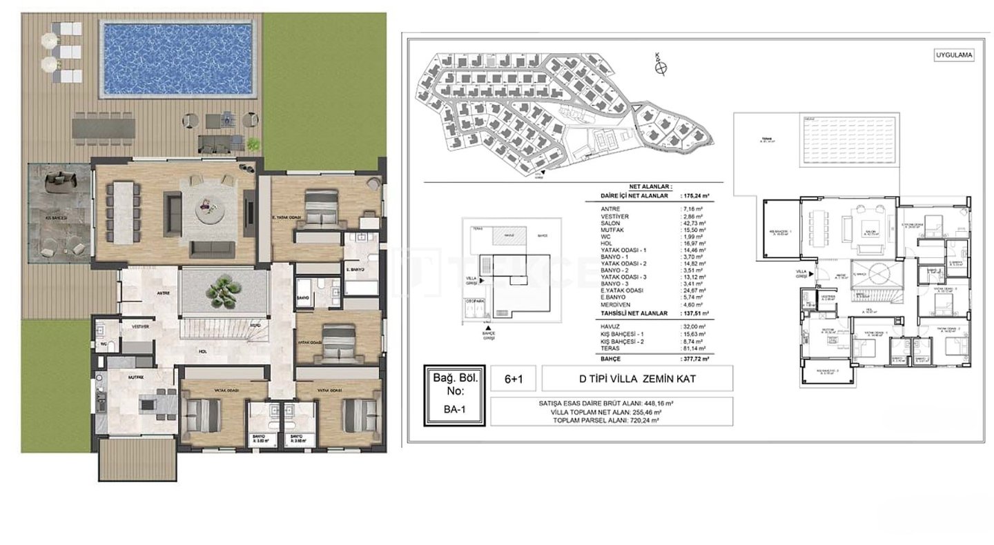 Geräumige Villen mit privaten Pools und Gärten in Kekliktepe, Urla, İzmir & 13 Urla, einer der beliebtesten und ruhigsten Stadtteile von İzmir, bietet eine großartige Gelegenheit für diejenigen, die ein ruhiges, hochwertiges Leben in der Nähe der Natur suchen. Dieses besondere Projekt, eingebettet in viel Grün, bietet einen idealen Lebensraum für Menschen, die in der Nähe der Stadt sein möchten, aber eine ruhige Umgebung genießen wollen. In den letzten Jahren hat sich Urla zu einem prestigeträchtigen Wohn- und Urlaubsgebiet entwickelt, das von wohlhabenden und angesehenen Familien aus verschiedenen Regionen der Türkei bevorzugt wird. & 13 In İzmir, Villen zum Verkauf, liegen die Objekte etwa 3 km von Einkaufszentren, 3,2 km vom Stadtzentrum von Urla, 3,5 km von der Küste, 5,7 km vom Krankenhaus, 7 km von Gebieten mit internationalen Schulen und 46 km vom Flughafen İzmir Adnan Menderes entfernt. & 13 Das Projekt erstreckt sich über ein großes Grundstück von 99.000 m², und die Villen stehen jeweils auf Grundstücken von ca. 700 bis 1000 m². Die Villen sind einstöckig und verfügen über geräumige Kellerräume, die für verschiedene Zwecke genutzt werden können. Jede Villa verfügt über einen privaten Parkplatz, einen Pool in einem großen privaten Garten sowie ein Videoüberwachungssystem, um Komfort und Sicherheit zu gewährleisten. & 13 Die Innenräume der Villen sind geräumig und funktional. Jede Villa verfügt über ein großes Wohnzimmer, eine Eingangshalle, eine optional geschlossene offene Küche, Schlafzimmer, Badezimmer, ein Ankleidezimmer, eine Gartenterrasse, einen Pool, einen Technikraum und Abstellflächen. Diese Merkmale machen die Villen ideal sowohl für große Familien als auch für alle, die einen komfortablen Lebensstil suchen. & 13 Bei der Innenausstattung kommen durchgehend hochwertige Materialien zum Einsatz. Zur Standardausstattung gehören Schwenktüren aus Stahl, maßgefertigte Küchenschränke, Einbaugeräte, Laminat- und Keramikböden, moderne Duschkabinen, Fenster mit Aluminiumrahmen, intelligente Haussteuerung und eine zentrale Satellitenanlage. Zusammen schaffen diese Elemente ein luxuriöses und praktisches Wohnumfeld.& 13 ADB-00212