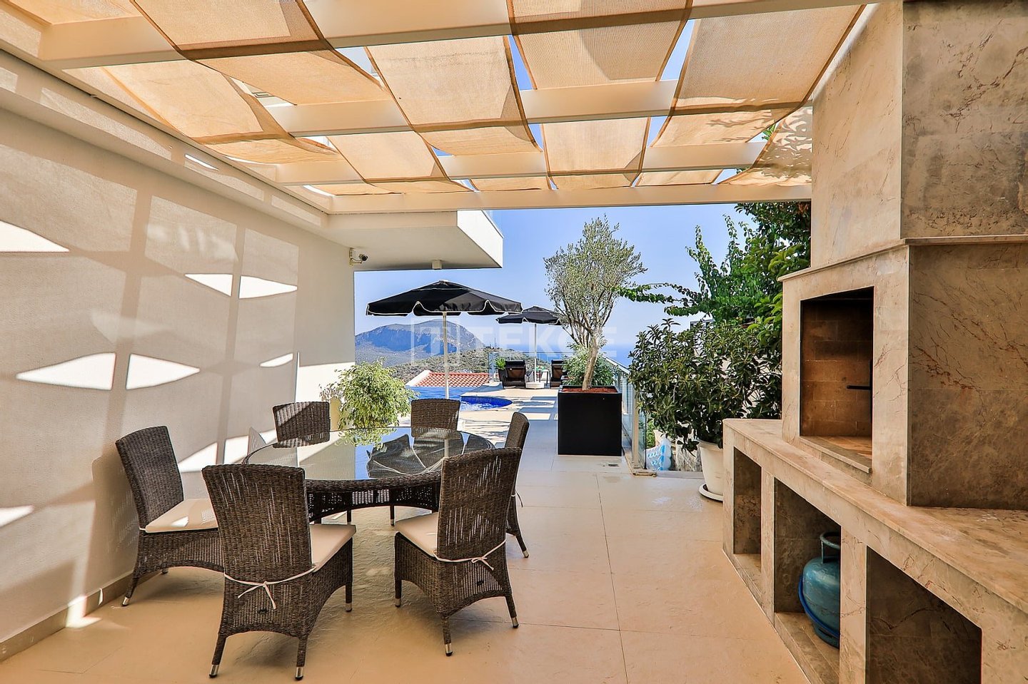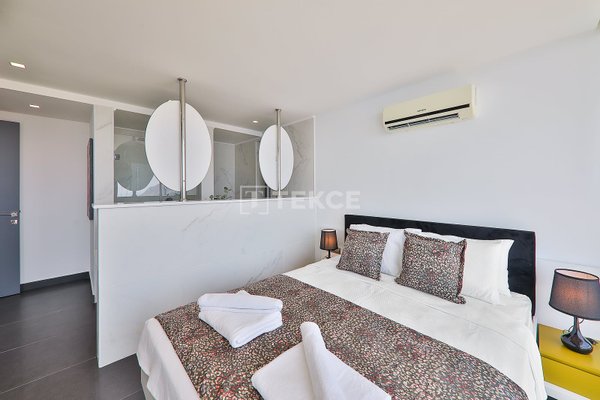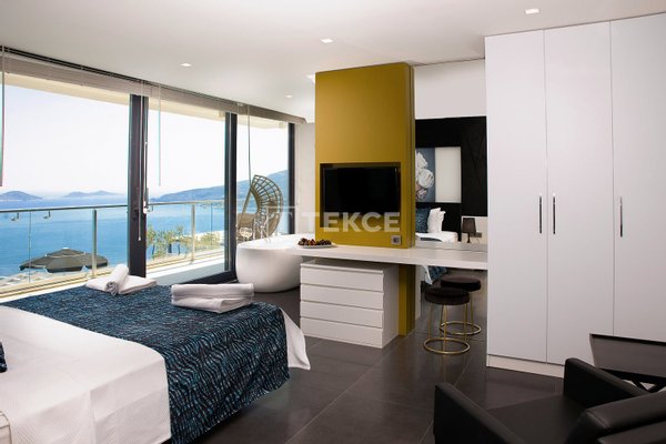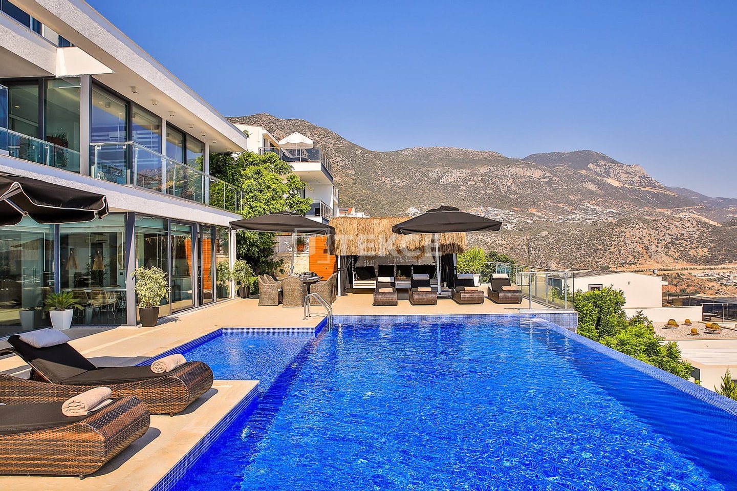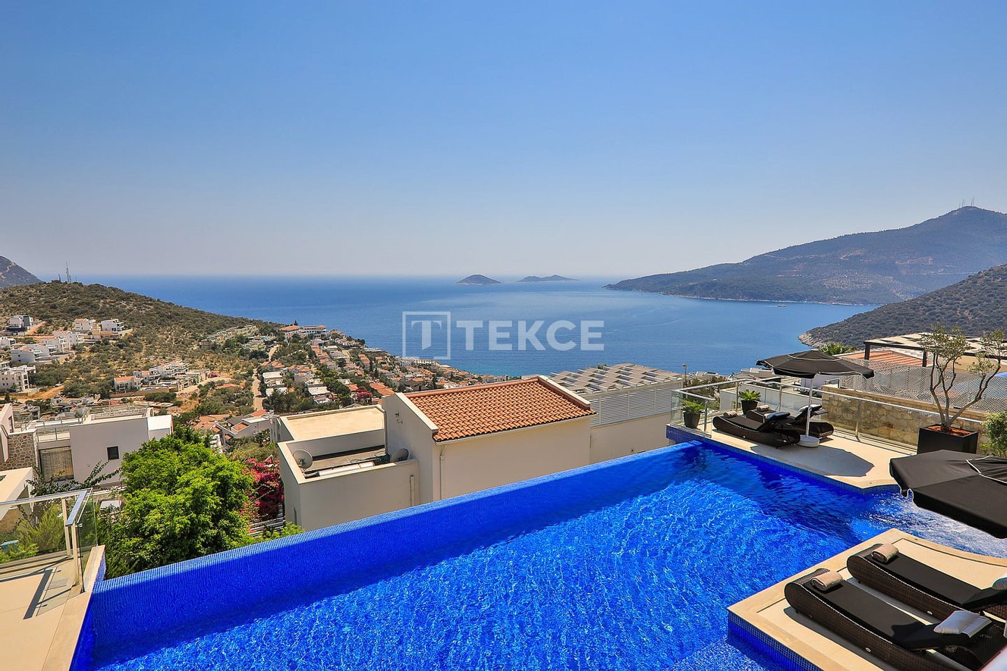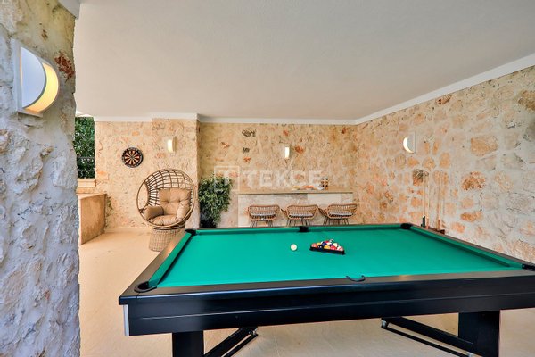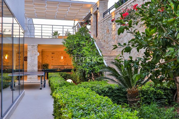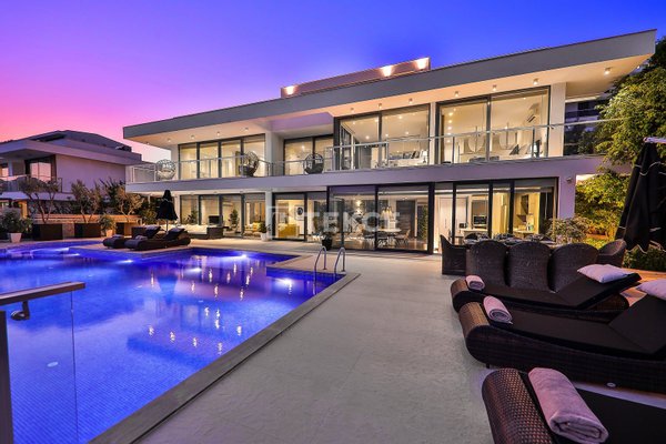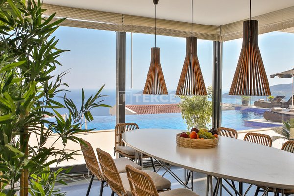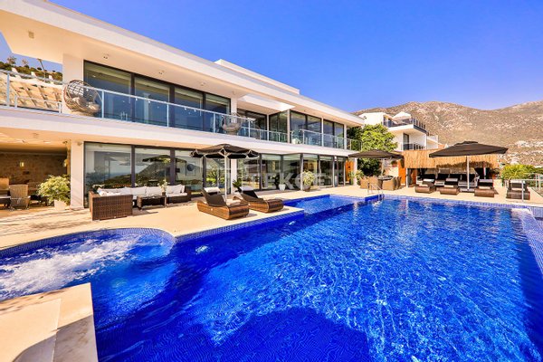 Luxuriöse Villa mit Meerblick und privatem Pool auf einem 710 m² großen Grundstück in Kalkan & 13 Kalkan liegt an der Westküste von Antalya und ist mit seinen weltberühmten türkisfarbenen Buchten, seinem historischen Charakter und seiner eleganten Atmosphäre eines der prestigeträchtigsten Urlaubsziele im Mittelmeerraum. Die Kalamar-Bucht, eine der exklusivsten Gegenden der Stadt, steht mit ihrem kristallklaren Wasser und dem unverbauten Blick auf den Sonnenuntergang im Zentrum des luxuriösen Wohnens. Bekannt für seine Ruhe und seine erhöhte Lage, beherbergt dieses Gebiet prestigeträchtige Villenprojekte, bei denen sich elegantes Design mit der Natur verbindet und Investoren sowohl eine außergewöhnliche Lebensqualität als auch ein starkes Vermietungspotenzial bietet. & 13 Diese Villa zum Verkauf in Kalkan, Türkei, liegt 1,5 km vom Stadtzentrum, 2 km vom Gesundheitszentrum Kalkan und 2,5 km vom öffentlichen Strand von Kalkan entfernt. Der Kaputaş-Strand ist 7 km entfernt und die antike Stadt Patara 17 km. Für umfassendere medizinische Versorgung befindet sich das staatliche Krankenhaus von Kaş in 27 km Entfernung. Der nächstgelegene Flughafen, der Flughafen Dalaman, ist etwa 120 km entfernt. & 13 Auf einem 710 m² großen Grundstück in einer erhöhten und ruhigen Lage gelegen, bietet diese Villa mit ihrer reichhaltigen Ausstattung ein komfortables Wohnambiente an. Der Außenbereich verfügt über einen Endlospool mit Whirlpoolbereich und eine großzügige Terrasse. Unter einer schattigen Pergola befindet sich zudem eine Außenküche, die mit einem Kühlschrank, einer Spüle und einem Grill ausgestattet ist. Im Garten im Innenhof stehen ein Billardtisch und eine Tischtennisplatte zur Verfügung. & 13 Im Erdgeschoss befindet sich eine Küche mit Arbeitsplatten aus Verbundmarmor, ausgestattet mit hochwertigen Haushaltsgeräten der Marke Siemens, sowie ein geräumiger Wohnbereich mit einem Samsung 4K-Ultra-TV und einem Bluetooth-Soundsystem. Im ersten Stock, der über eine speziell entworfene Treppe mit Glasgeländer und mit Teakholz verkleideten Stufen erreicht wird, die einen ästhetischen Akzent setzen, befinden sich drei geräumige Schlafzimmer, jedes mit eigenem Bad, begehbarem Ankleidezimmer und privatem Balkon. Das 35 m² große Hauptschlafzimmer verfügt über eine Badewanne mit Meerblick. Im obersten Stockwerk befinden sich ein viertes Schlafzimmer mit eigenem Bad (25 m²) sowie eine Panoramaterrasse mit einer Außenbar und Sonnenliegen.& 13 AYT-04923
