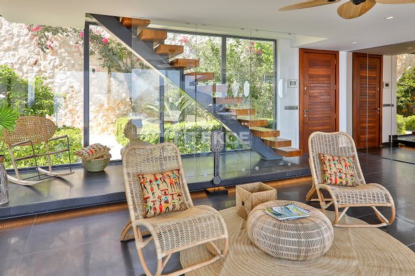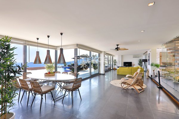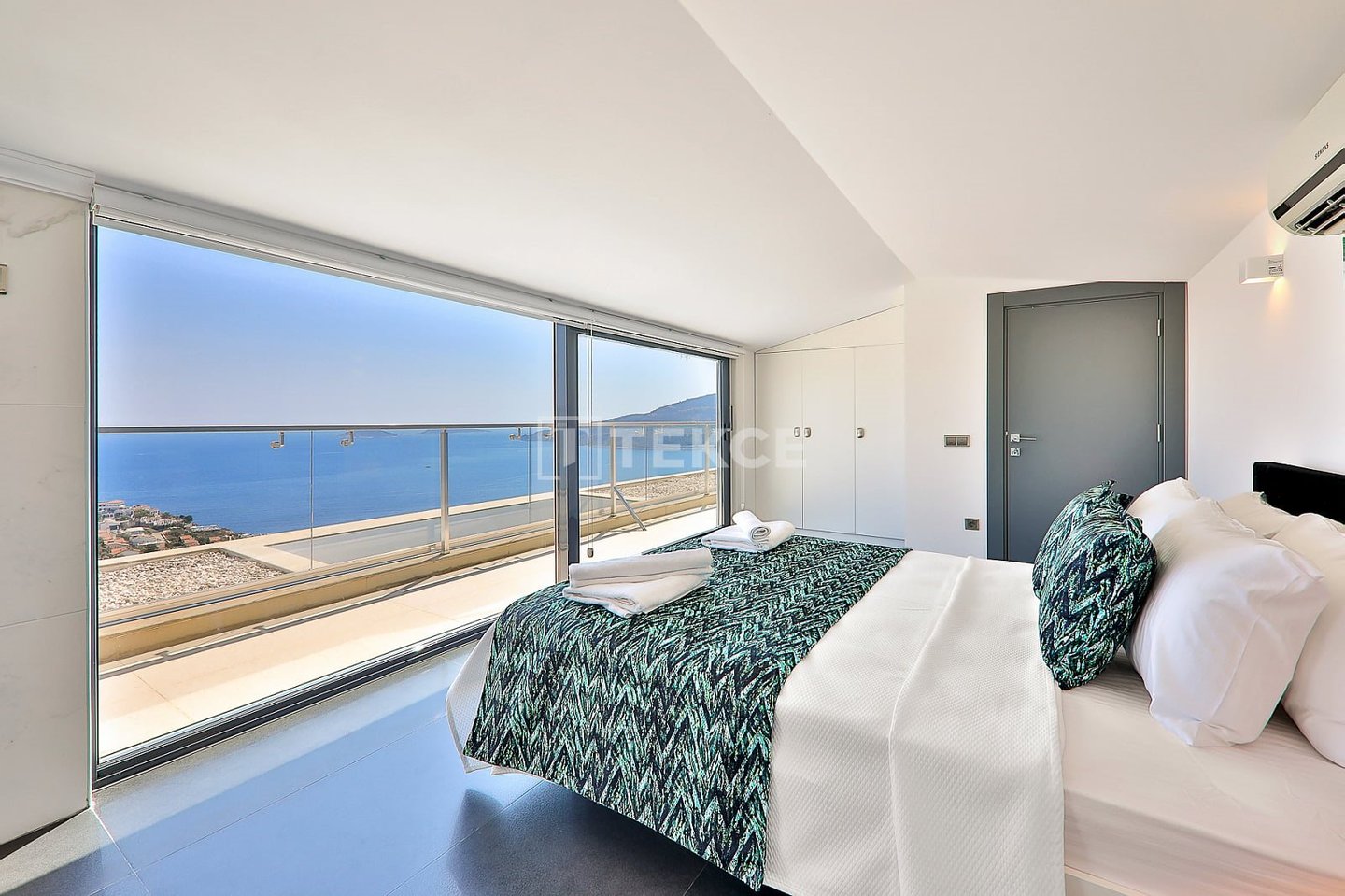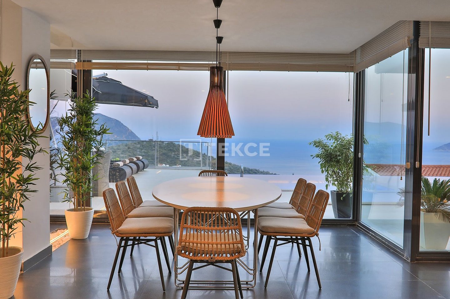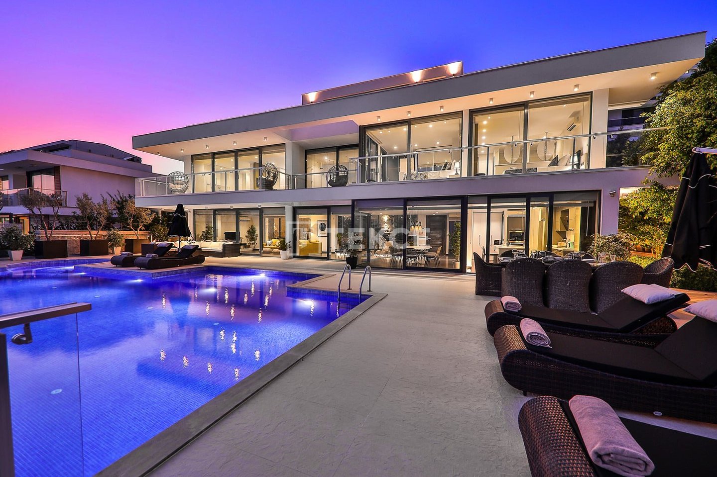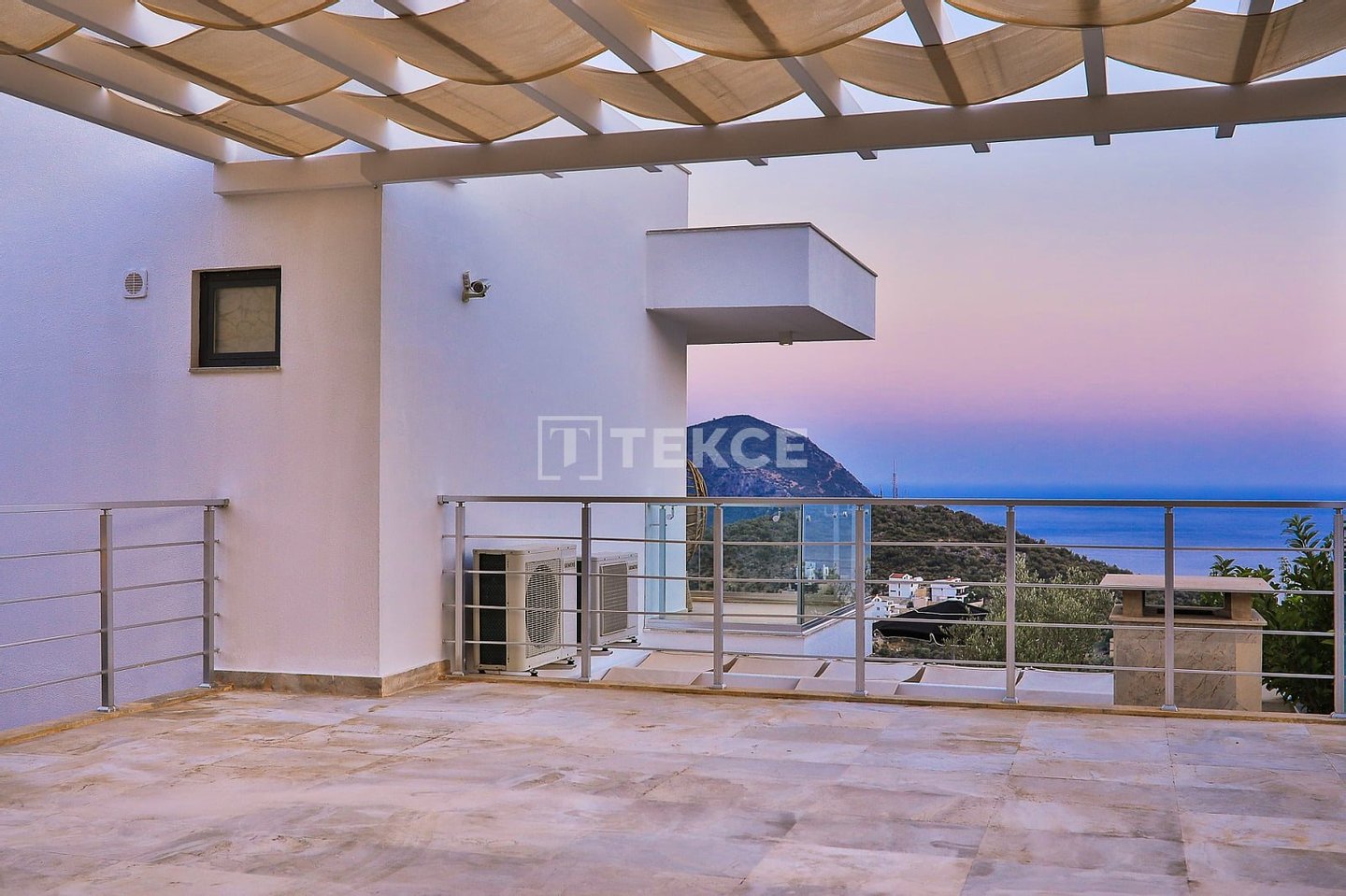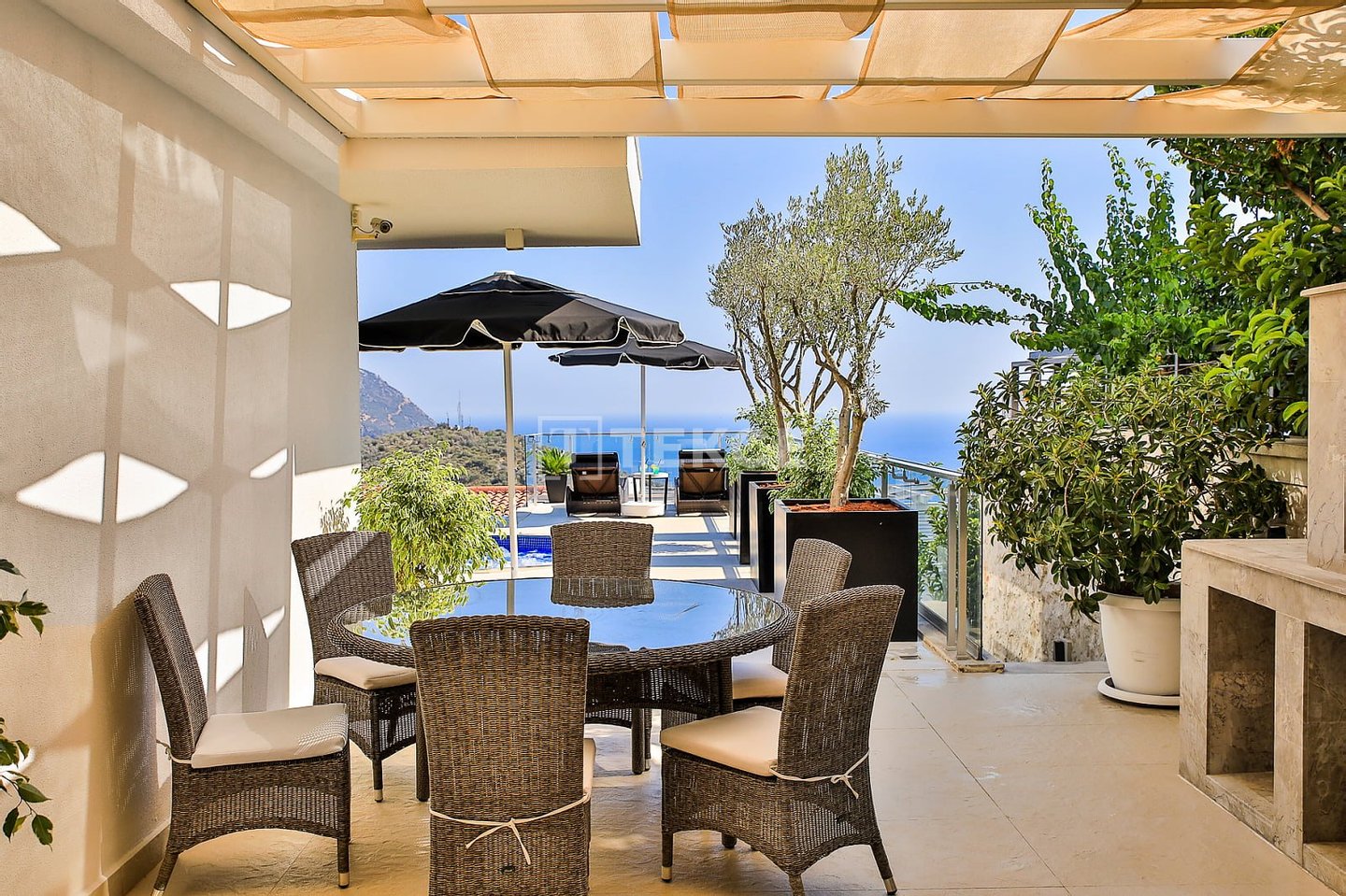 Luxuriöse Villa mit Meerblick und privatem Pool auf einem 710 m² großen Grundstück in Kalkan & 13 Kalkan liegt an der Westküste von Antalya und ist mit seinen weltberühmten türkisfarbenen Buchten, seinem historischen Charakter und seiner eleganten Atmosphäre eines der prestigeträchtigsten Urlaubsziele im Mittelmeerraum. Die Kalamar-Bucht, eine der exklusivsten Gegenden der Stadt, steht mit ihrem kristallklaren Wasser und dem unverbauten Blick auf den Sonnenuntergang im Zentrum des luxuriösen Wohnens. Bekannt für seine Ruhe und seine erhöhte Lage, beherbergt dieses Gebiet prestigeträchtige Villenprojekte, bei denen sich elegantes Design mit der Natur verbindet und Investoren sowohl eine außergewöhnliche Lebensqualität als auch ein starkes Vermietungspotenzial bietet. & 13 Diese Villa zum Verkauf in Kalkan, Türkei, liegt 1,5 km vom Stadtzentrum, 2 km vom Gesundheitszentrum Kalkan und 2,5 km vom öffentlichen Strand von Kalkan entfernt. Der Kaputaş-Strand ist 7 km entfernt und die antike Stadt Patara 17 km. Für umfassendere medizinische Versorgung befindet sich das staatliche Krankenhaus von Kaş in 27 km Entfernung. Der nächstgelegene Flughafen, der Flughafen Dalaman, ist etwa 120 km entfernt. & 13 Auf einem 710 m² großen Grundstück in einer erhöhten und ruhigen Lage gelegen, bietet diese Villa mit ihrer reichhaltigen Ausstattung ein komfortables Wohnambiente an. Der Außenbereich verfügt über einen Endlospool mit Whirlpoolbereich und eine großzügige Terrasse. Unter einer schattigen Pergola befindet sich zudem eine Außenküche, die mit einem Kühlschrank, einer Spüle und einem Grill ausgestattet ist. Im Garten im Innenhof stehen ein Billardtisch und eine Tischtennisplatte zur Verfügung. & 13 Im Erdgeschoss befindet sich eine Küche mit Arbeitsplatten aus Verbundmarmor, ausgestattet mit hochwertigen Haushaltsgeräten der Marke Siemens, sowie ein geräumiger Wohnbereich mit einem Samsung 4K-Ultra-TV und einem Bluetooth-Soundsystem. Im ersten Stock, der über eine speziell entworfene Treppe mit Glasgeländer und mit Teakholz verkleideten Stufen erreicht wird, die einen ästhetischen Akzent setzen, befinden sich drei geräumige Schlafzimmer, jedes mit eigenem Bad, begehbarem Ankleidezimmer und privatem Balkon. Das 35 m² große Hauptschlafzimmer verfügt über eine Badewanne mit Meerblick. Im obersten Stockwerk befinden sich ein viertes Schlafzimmer mit eigenem Bad (25 m²) sowie eine Panoramaterrasse mit einer Außenbar und Sonnenliegen.& 13 AYT-04923