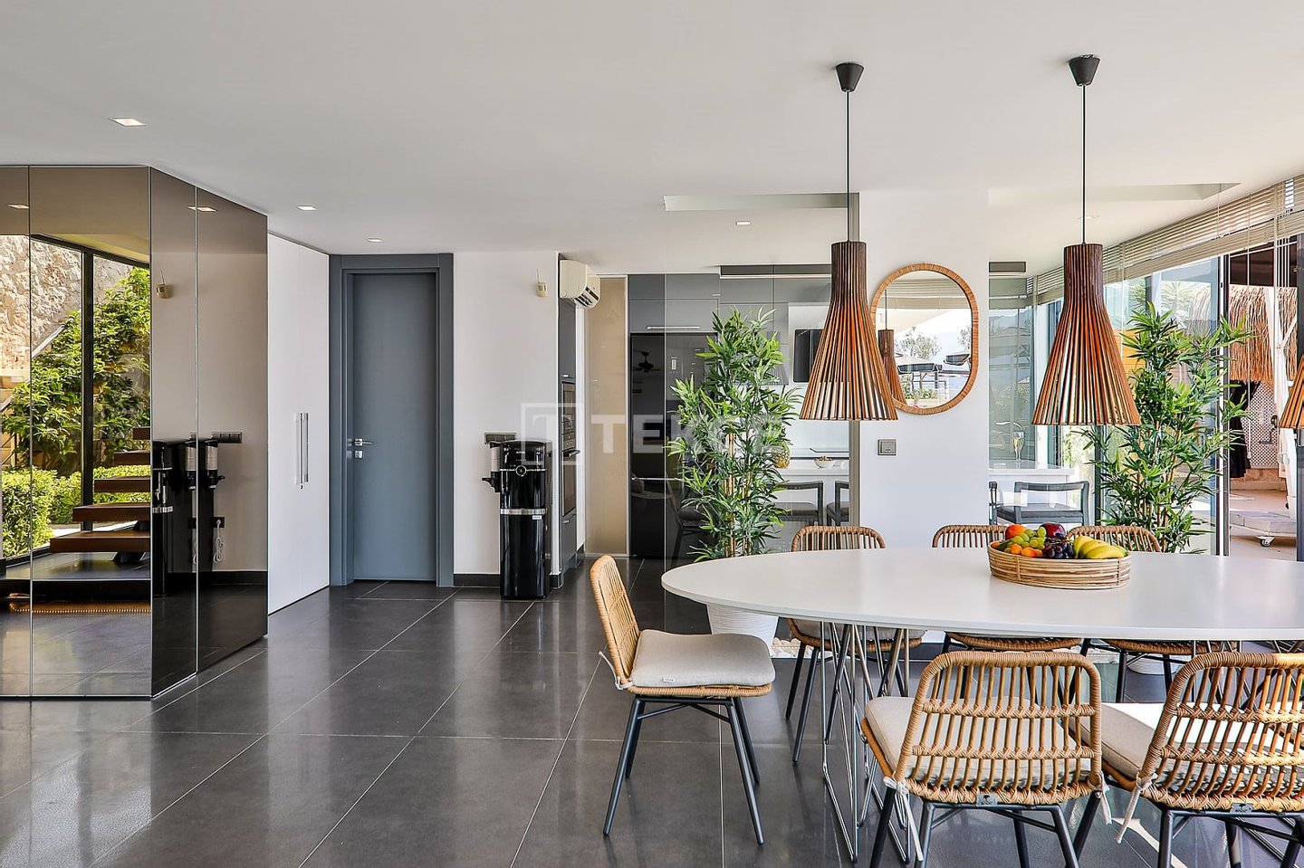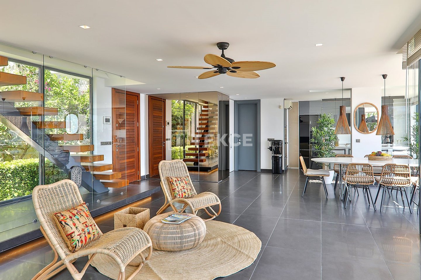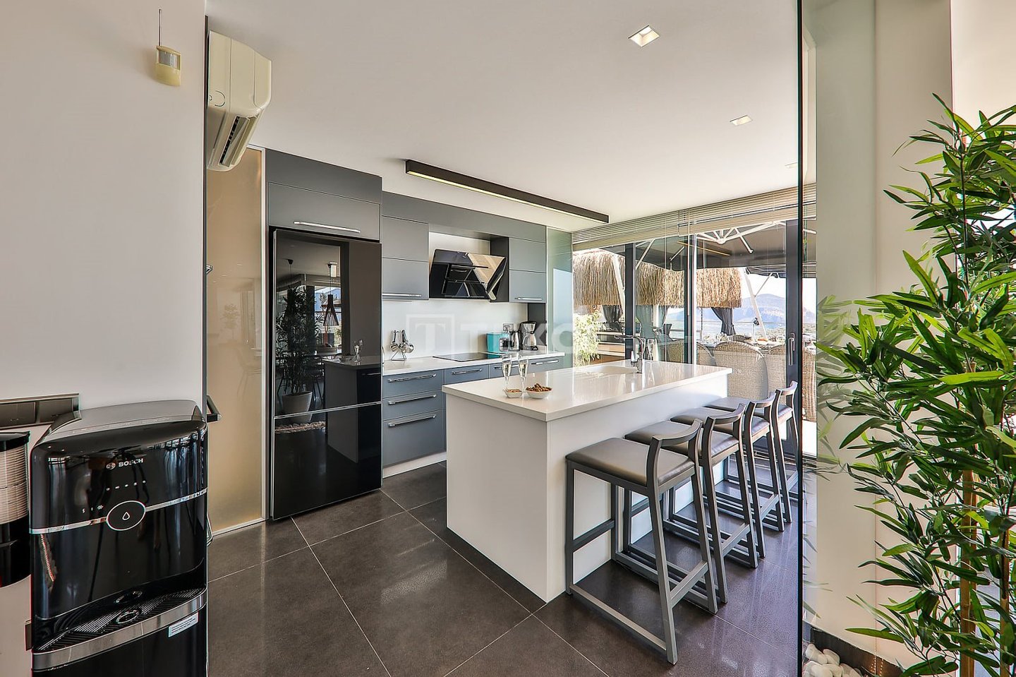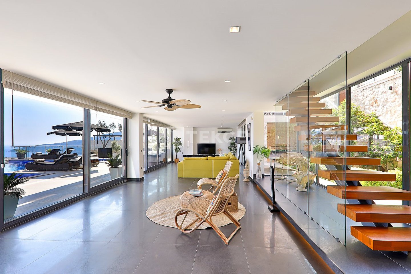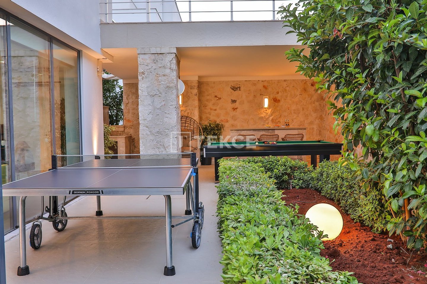 Luxuriöse Villa mit Meerblick und privatem Pool auf einem 710 m² großen Grundstück in Kalkan & 13 Kalkan liegt an der Westküste von Antalya und ist mit seinen weltberühmten türkisfarbenen Buchten, seinem historischen Charakter und seiner eleganten Atmosphäre eines der prestigeträchtigsten Urlaubsziele im Mittelmeerraum. Die Kalamar-Bucht, eine der exklusivsten Gegenden der Stadt, steht mit ihrem kristallklaren Wasser und dem unverbauten Blick auf den Sonnenuntergang im Zentrum des luxuriösen Wohnens. Bekannt für seine Ruhe und seine erhöhte Lage, beherbergt dieses Gebiet prestigeträchtige Villenprojekte, bei denen sich elegantes Design mit der Natur verbindet und Investoren sowohl eine außergewöhnliche Lebensqualität als auch ein starkes Vermietungspotenzial bietet. & 13 Diese Villa zum Verkauf in Kalkan, Türkei, liegt 1,5 km vom Stadtzentrum, 2 km vom Gesundheitszentrum Kalkan und 2,5 km vom öffentlichen Strand von Kalkan entfernt. Der Kaputaş-Strand ist 7 km entfernt und die antike Stadt Patara 17 km. Für umfassendere medizinische Versorgung befindet sich das staatliche Krankenhaus von Kaş in 27 km Entfernung. Der nächstgelegene Flughafen, der Flughafen Dalaman, ist etwa 120 km entfernt. & 13 Auf einem 710 m² großen Grundstück in einer erhöhten und ruhigen Lage gelegen, bietet diese Villa mit ihrer reichhaltigen Ausstattung ein komfortables Wohnambiente an. Der Außenbereich verfügt über einen Endlospool mit Whirlpoolbereich und eine großzügige Terrasse. Unter einer schattigen Pergola befindet sich zudem eine Außenküche, die mit einem Kühlschrank, einer Spüle und einem Grill ausgestattet ist. Im Garten im Innenhof stehen ein Billardtisch und eine Tischtennisplatte zur Verfügung. & 13 Im Erdgeschoss befindet sich eine Küche mit Arbeitsplatten aus Verbundmarmor, ausgestattet mit hochwertigen Haushaltsgeräten der Marke Siemens, sowie ein geräumiger Wohnbereich mit einem Samsung 4K-Ultra-TV und einem Bluetooth-Soundsystem. Im ersten Stock, der über eine speziell entworfene Treppe mit Glasgeländer und mit Teakholz verkleideten Stufen erreicht wird, die einen ästhetischen Akzent setzen, befinden sich drei geräumige Schlafzimmer, jedes mit eigenem Bad, begehbarem Ankleidezimmer und privatem Balkon. Das 35 m² große Hauptschlafzimmer verfügt über eine Badewanne mit Meerblick. Im obersten Stockwerk befinden sich ein viertes Schlafzimmer mit eigenem Bad (25 m²) sowie eine Panoramaterrasse mit einer Außenbar und Sonnenliegen.& 13 AYT-04923