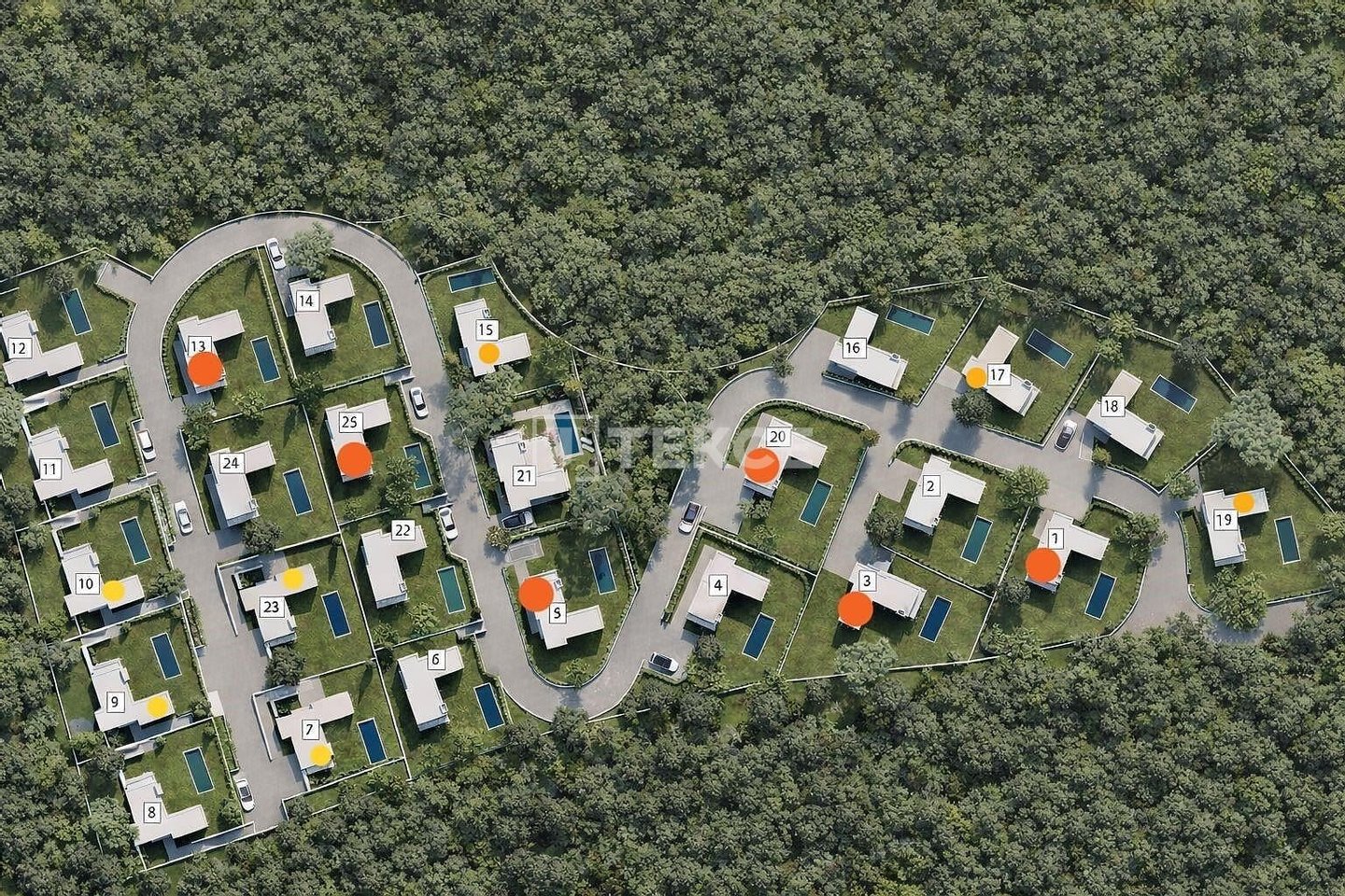 Freistehende Villen mit privaten Pools inmitten der Natur in Bodrum Torba & 13 Diese Villen befinden sich in der Gegend von Torba in Bodrum, Türkei. Torba, eine der beliebtesten Buchten von Bodrum, ist ein beliebter Ort, der mit seiner natürlichen Schönheit und ruhigen Atmosphäre sowohl lokale als auch internationale Investoren anzieht. Torba ist vor allem für seine Pinienwälder, das kristallklare Meerwasser und die wunderschönen Strände bekannt. Es verfügt zudem über eine erstklassige Lage in der Nähe des Zentrums von Bodrum. Mit seinem friedlichen und natürlichen Ambiente ist Torba eines der prestigeträchtigsten Viertel von Bodrum. Hier befinden sich auch mehrere Boutique-Hotels, Restaurants und Gebäude, die den natürlichen Charakter der Region bewahren. & 13 Diese Villen zum Verkauf in Bodrum, Türkei liegen 1,5 km vom Strand, 6 km von allen Arten von Einrichtungen des täglichen Bedarfs, 7 km vom Zentrum von Bodrum, 8 km von medizinischen Einrichtungen, 10 km vom Yachthafen von Bodrum, 22 km vom Yachthafen von Yalıkavak und 22 km vom internationalen Flughafen Milas-Bodrum entfernt. & 13 Das Projekt erstreckt sich über ein großzügiges Grundstück von 15.000 m² und umfasst insgesamt 25 freistehende Villen. Jede dieser Villen verfügt über einen großzügigen Grundstücksanteil. Dank der geringen Bebauungsdichte genießen die Bewohner maximale Privatsphäre. & 13 Das Projekt bietet Villen mit 3 und 4 Schlafzimmern, alle mit komfortablen Wohnräumen, die für große Familien geeignet sind an. Die Villen verfügen über Schlafzimmer mit eigenem Bad, Kamine, Gästebäder und Wohnbereiche mit hohen Decken. Im Außenbereich bieten sie zudem großzügige Terrassen, private Gärten und private Schwimmbäder an. Jede Villa ist mit Fußbodenheizung, einer VRF-Klimaanlage, einem Generator und einem Sicherheitssystem ausgestattet.& 13 BJV-00681