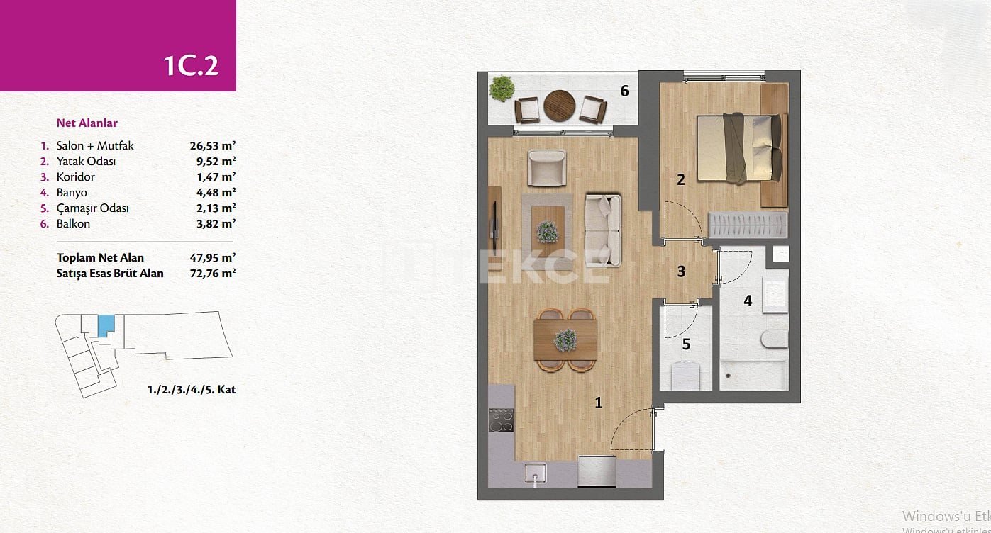 Wohnungen in Küstennähe in einem sicheren Gebäude in Konak, İzmir & 13 Konak ist in Bezug auf Kultur, Kunst, Handel und Tourismus einer der wichtigsten Stadtteile von İzmir. Er zeichnet sich durch ein gut ausgebautes Verkehrsnetz und internationale Bildungseinrichtungen aus. Er bietet einfachen Zugang zu allen Einrichtungen des täglichen Bedarfs und ermöglicht einen komfortablen Lebensstil. Mit diesen Vorzügen ist Konak ein äußerst attraktiver Stadtteil für alle, die in İzmir leben möchten. & 13 Diese Wohnungen befinden sich ca. 50 Meter vom Meer und den Erholungsgebieten, 70 Meter von der Bushaltestelle, 400 Meter vom Bahnhof, 450 Meter vom Kültürpark, 500 Meter vom Fähranleger, 800 Meter vom Krankenhaus, 900 Meter von internationalen Schulen, 2,8 km vom Hafen von İzmir, 20 km vom Flughafen Adnan Menderes, 40 km von den Sandstränden von Urla, 52 km von den Stränden in Seferihisar, 60 km von der Küste von Gümüldür, 82 km von den Stränden in Alaçatı und 90 km von Çeşme entfernt. & 13 Das Projekt erstreckt sich über eine Gesamtgrundstücksfläche von 1.505 Quadratmetern und bietet zahlreiche soziale Einrichtungen, die darauf ausgelegt sind, die Lebensqualität der Bewohner zu verbessern. Es bietet ein sicheres Wohnumfeld mit einem 24/7-Sicherheitsdienst und Überwachungskameras, während überdachte Parkplätze den Fahrzeugbesitzern großen Komfort bieten an. Das Projekt umfasst Hausmeisterdienste, zahlreiche Cafés, Restaurants, Märkte und verschiedene Gewerbeeinheiten. & 13 Die Wohnungen zum Verkauf in İzmir sind in verschiedenen Grundrissen erhältlich. Sie sind so konzipiert, dass sie alle Anforderungen des modernen Wohnens erfüllen. Sie verfügen über ein Wohnzimmer, ein eigenes Bad, eine Duschkabine, einen Balkon, eine offene Küche, Einbauküchen, eine zentrale Satellitenanlage sowie Heiz- und Kühlsysteme. Mit diesen Ausstattungsmerkmalen sind die Wohnungen ideal für diejenigen, die einen komfortablen und repräsentativen Lebensstil suchen.& 13 ADB-00214