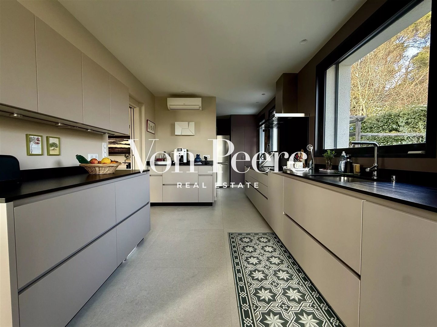 Ziel war es, einen reibungslosen und angenehmen Alltag zu ermöglichen: Im Erdgeschoss zeigt sich ein großes, helles Wohnzimmer mit Kamin sowie eine vollständig ausgestattete Küche, die sich natürlich auf zwei große Terrassen öffnet – ideal für Mahlzeiten im Freien. Ein Teil der Schlafbereiche umfasst ebenfalls diese Ebene.