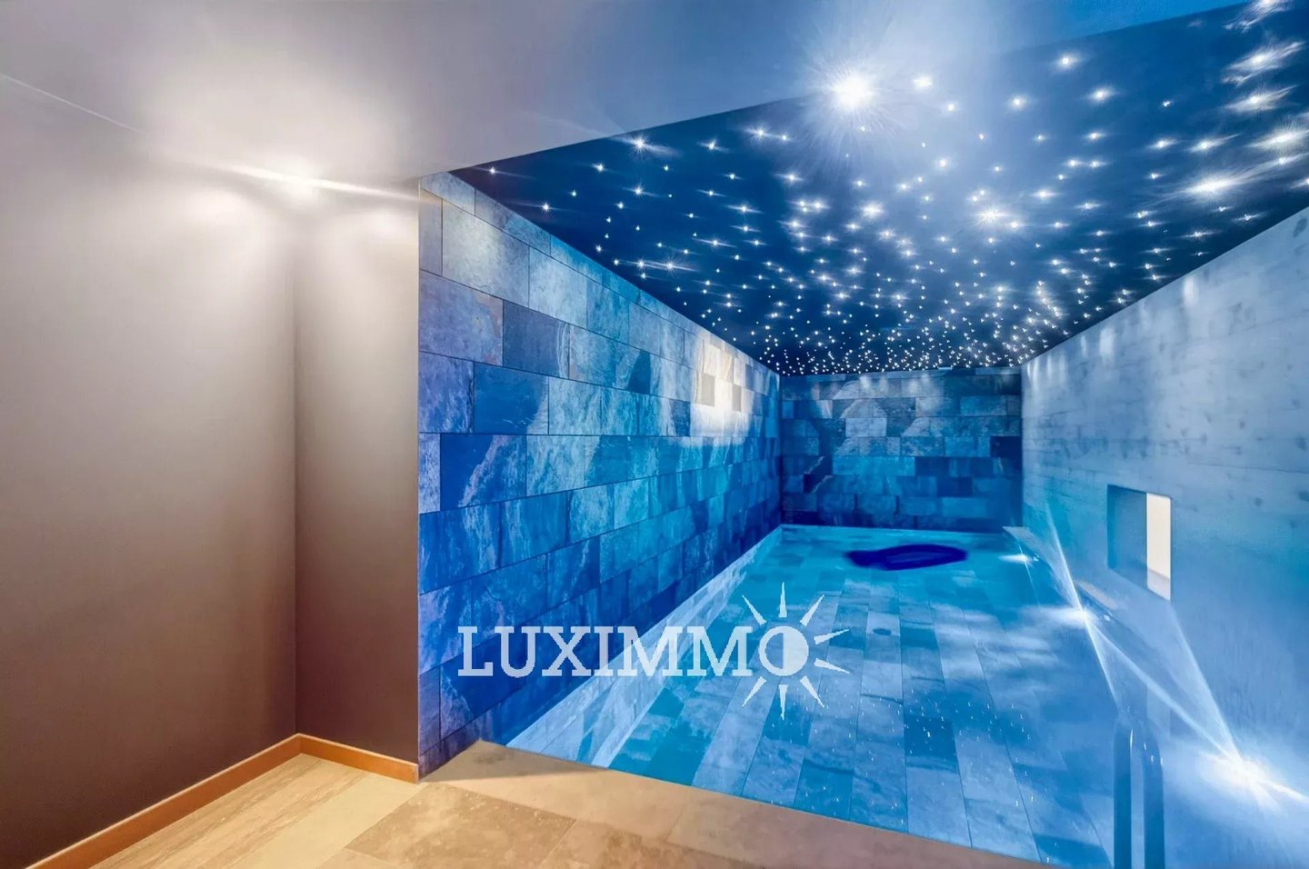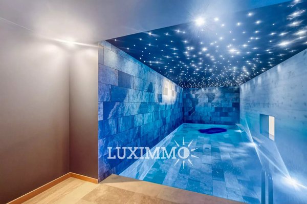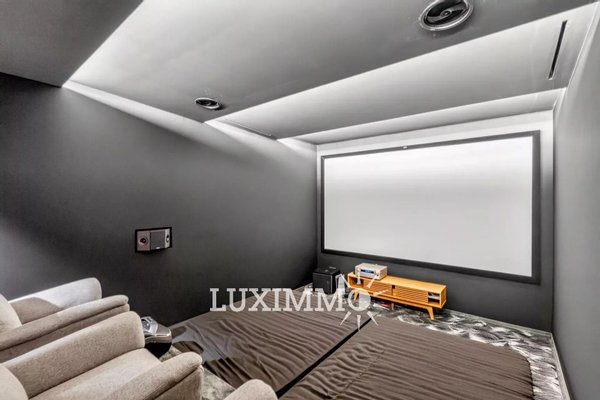 Obergeschoss: 4 Schlafzimmer, 4 Bäder, 1 Heimkino, 1 beheiztes Innenbecken.