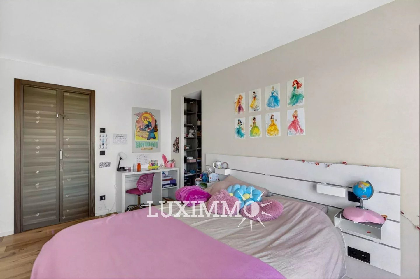 Erdgeschoss: 1 großes Wohnzimmer mit Essbereich, 1 offene amerikanische Küche zur Terrasse, 1 Master-Schlafzimmer mit Ankleidezimmer und Bad.