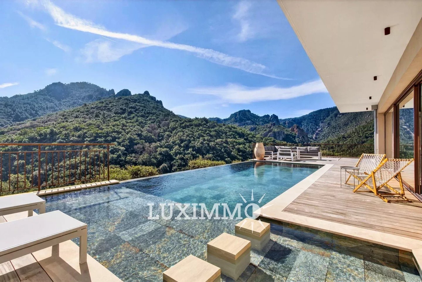 Dachterrasse: 1 Sommerküche mit Empfangsbereich, Boule-Platz und ein atemberaubender Blick auf den Esterel.