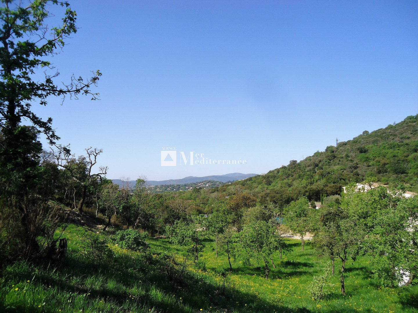 FOR SALE - BUILDING PLOT: Located in the town of Grimaud, in a wooded setting, this serviced plot of land offers an ideal location for a future building. It has many assets: a very large surface area of 6922m2, an ideal exposure to the South, a quiet