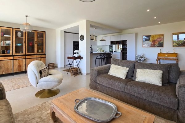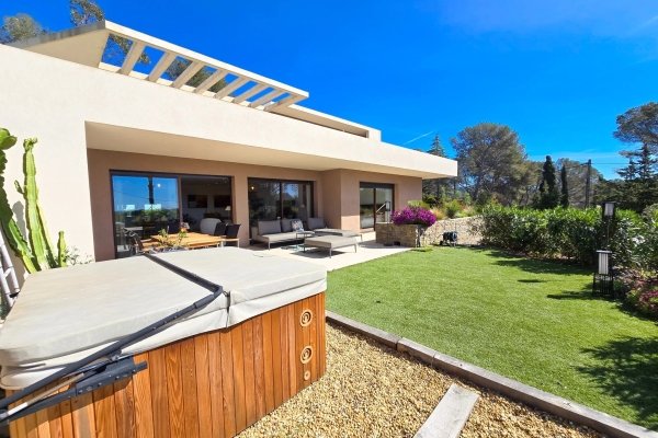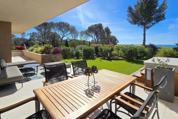 Exklusiv für AZUR ASTORIA – GROUPE-VOGEL. In Saint-Raphaël, im Herzen des begehrten Stadtteils von Boulouris, nur zehn Gehminuten vom Meer und den Geschäften entfernt, entdeckt man eine außergewöhnliche Wohnung, die Seltenheit, absolute Ruhe und Meerblick verbindet. Eingebettet in eine intime Wohnung mit modernem und unverwechselbarem Design, bietet diese hervorragende Zwei-Zimmer-Wohnung 103 Quadratmeter helle, geräumige Zimmer mit raffinierten Merkmalen und sorgfältigen Oberflächen. Das 52 m² große Wohnzimmer, das von Licht getaucht ist, öffnet sich zur voll ausgestatteten Küche und erweitert nahtlos den Wohnbereich nach außen. Die Master-Suite bietet einen inspirierenden Meerblick und ein eigenes privates Badezimmer mit Toilette, während das zweite Schlafzimmer, das auf Grünflächen hinausgeht, ebenfalls von einem eigenen Badezimmer profitiert. Eine Gästetoilette und ein Waschraum vervollständigen das Layout mit Funktionalität und Diskretion. Die Wohnung verfügt über eine große Terrasse von 52 m², die ein echtes Innen-Außen-Wohnerlebnis mit einem Abstellraum schafft. Ein zusätzlicher Bonus: Ein privater Garten von etwa 350 m² verfügt über einen Jacuzzi, der eine wahre Zuflucht der Ruhe schafft, völlig abgeschieden. Eine 32 m² große überdachte Garage, ein 21 m² großer privater Keller und ein Außenparkplatz vervollständigen die Annehmlichkeiten dieses exklusiven Anwesens. Eine wirklich außergewöhnliche Adresse für alle, die Ruhe, Meerblick und einzigartige Immobilien an der französischen Riviera suchen. Ein garantierter Favorit.