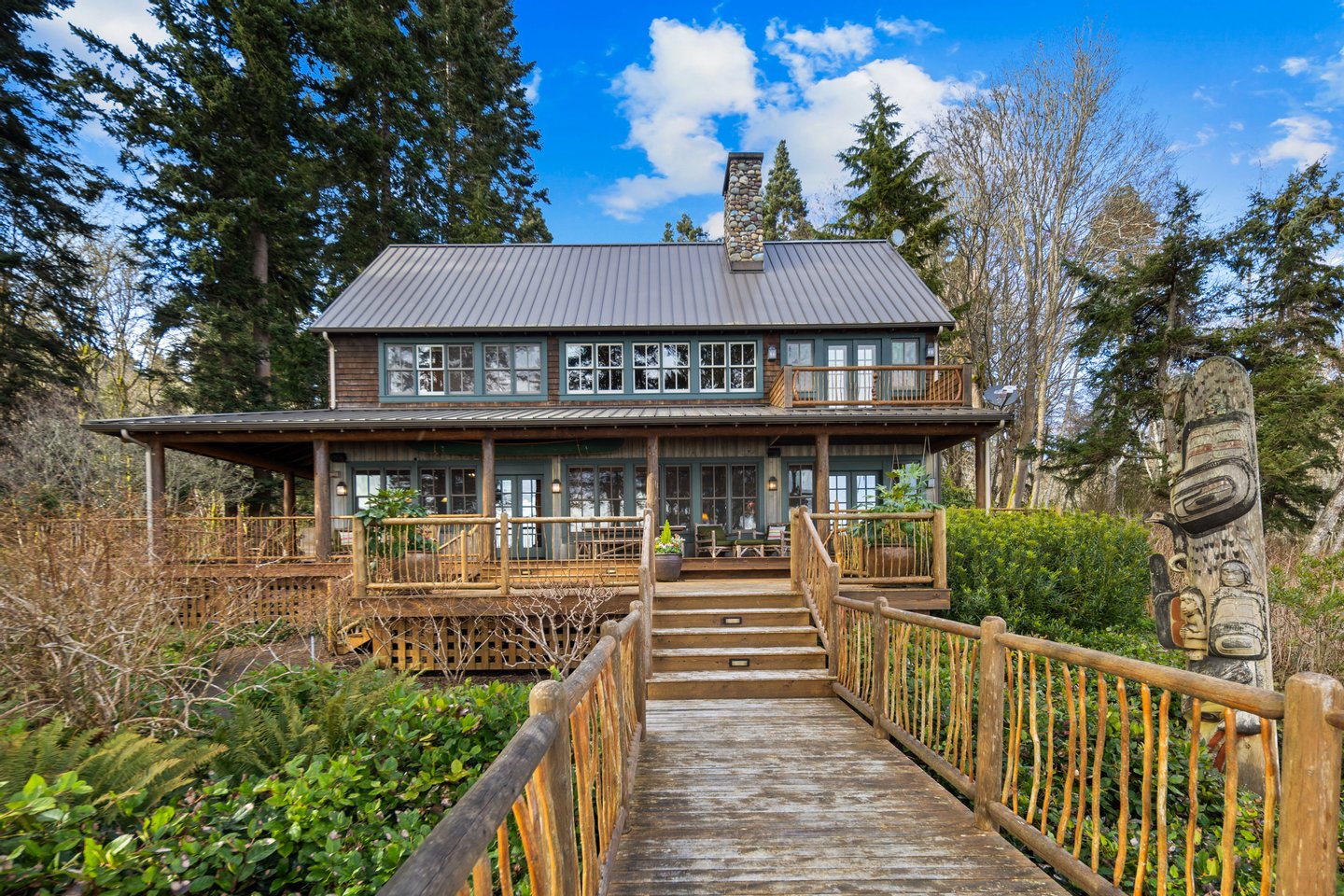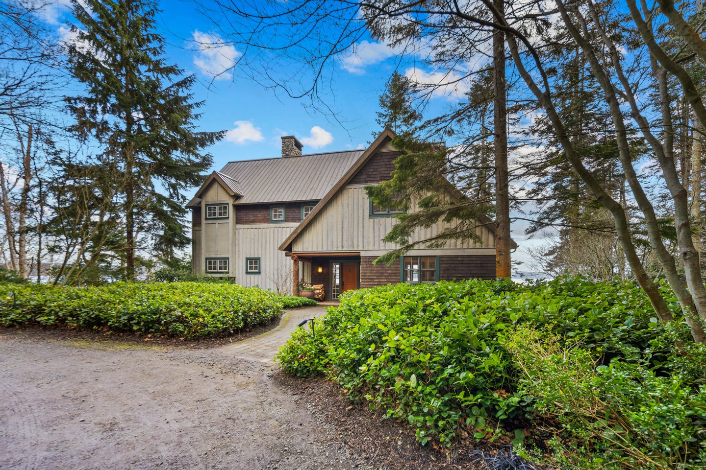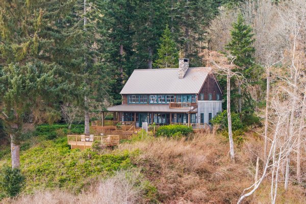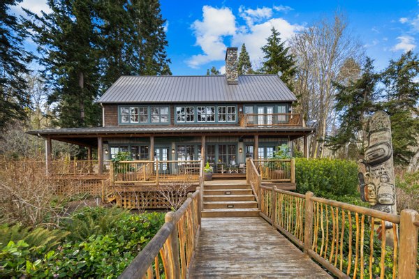 An den ruhigen Ufern des Hood Canal gelegen, bietet dieses außergewöhnliche Uferretreat über 5 Hektar Privatsphäre und 464 Fuß Uferlinie mit Gezeiten. Als klassische Nordwest-"Hütte im Wald" entworfen, verbindet das Haus zeitlose Handwerkskunst mit raffiniertem Luxus und dramatischer Naturlandschaft.
