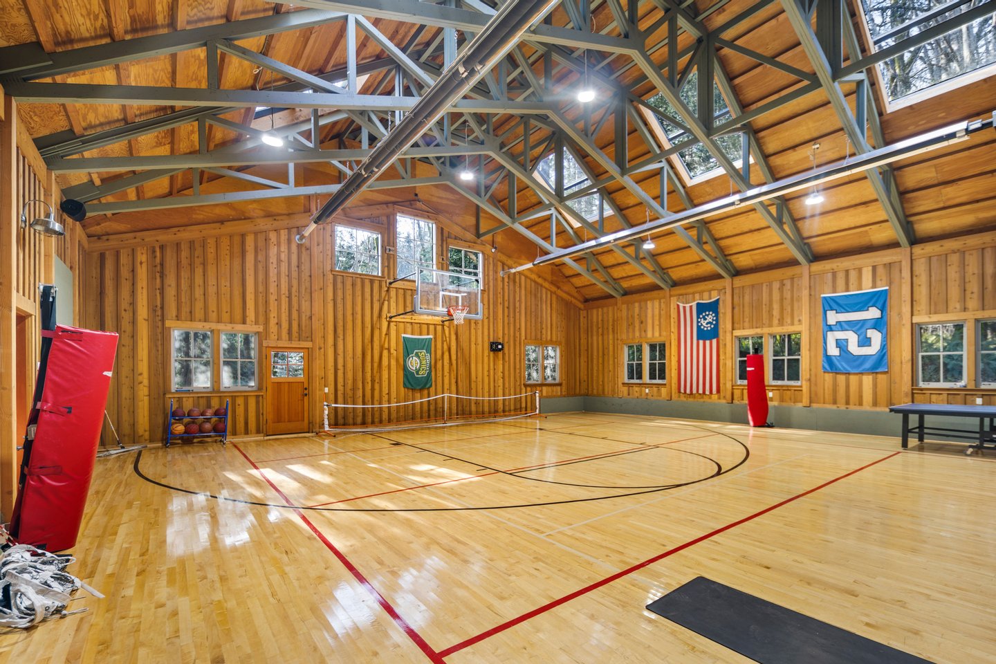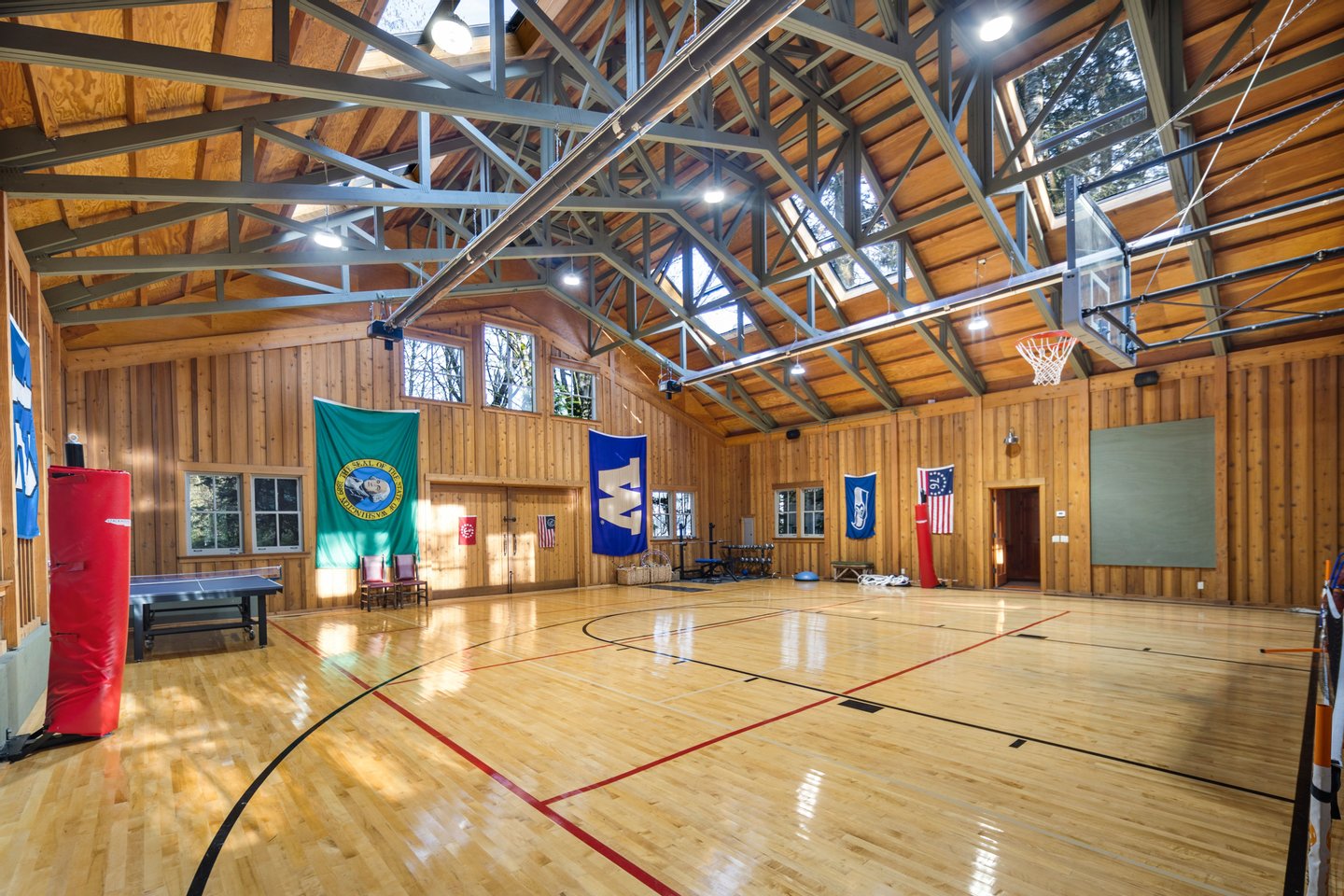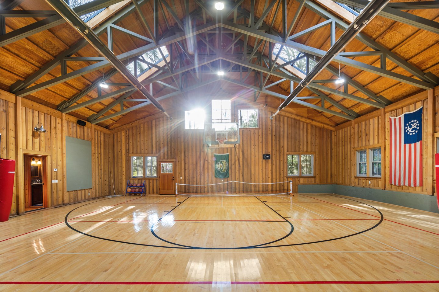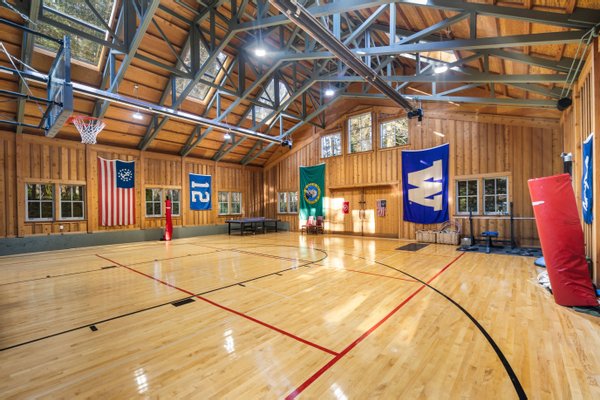 Über die Hauptresidenz hinaus bietet die Immobilie außergewöhnliche Flexibilität. Ein freistehendes Bunkhouse mit Gästen bietet komfortable Unterkünfte für Gäste, während eine außergewöhnliche 250 Quadratfuß große Turnhalle mit einem kompletten Basketballplatz Platz für Freizeit, Sport, Fitness oder Veranstaltungen bietet.