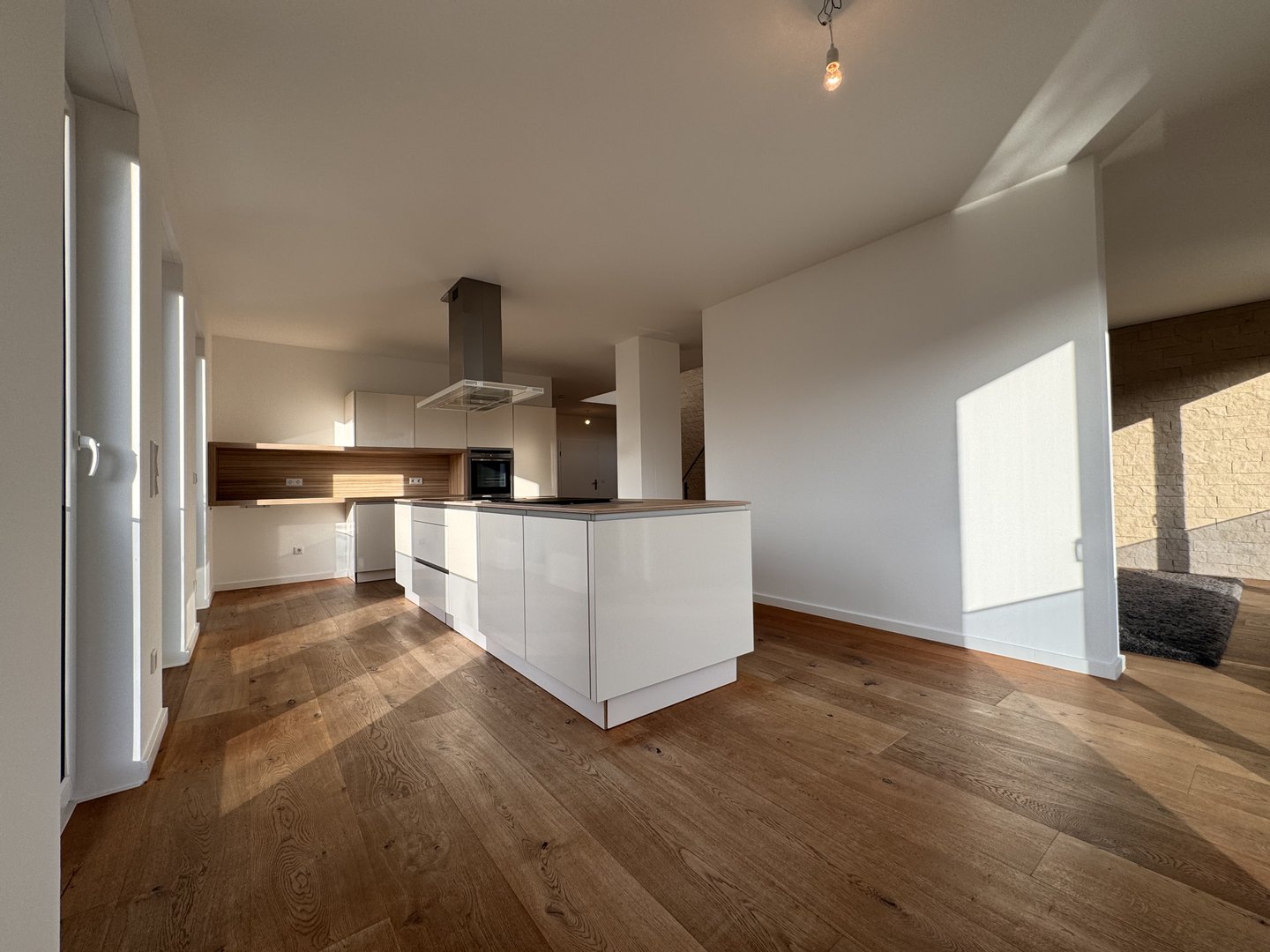 Die ca. 165 m² großzügig geschnittene 3-Zimmer-Wohnung erstreckt sich über zwei Ebenen und überzeugt durch eine hochwertige, durchdachte Ausstattung sowie ein offenes Raumkonzept. Bereits beim Betreten der ersten Etage eröffnet sich ein lichtdurchfluteter Wohnbereich, der durch seine Offenheit und Eleganz besticht. Der Wohnraum geht fließend in die stilvolle Einbauküche mit zentraler Kochinsel über. Ergänzt wird das Raumangebot auf der unteren Etage durch ein flexibel nutzbares Zimmer, das sich ideal als Kinderzimmer, Büro oder Gästezimmer eignet. Ein modernes Badezimmer mit Dusche sowie edlen Armaturen rundet diese Ebene komfortabel ab.