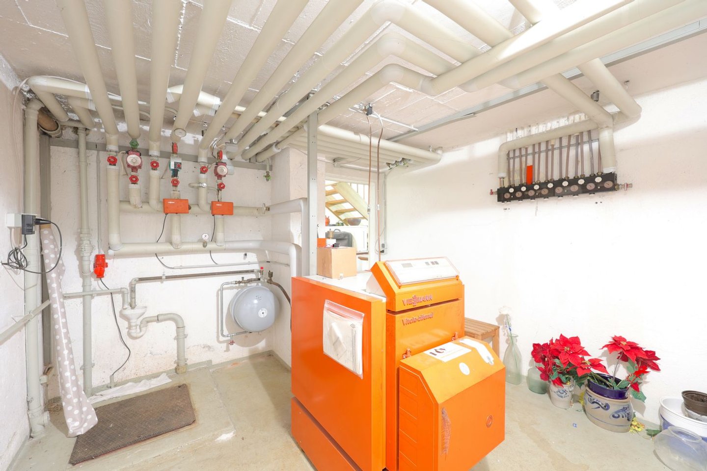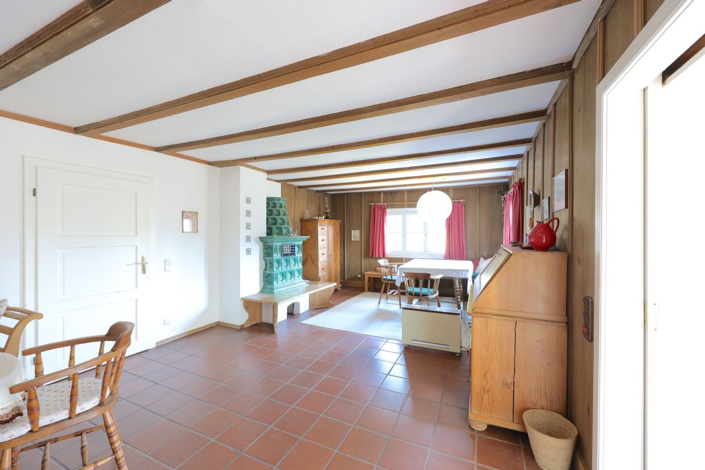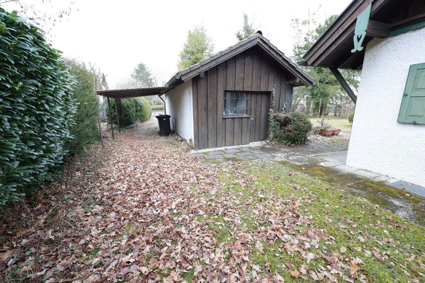 Zusätzliche praktische Mehrwerte runden das Angebot ab ein Kachelofen dient als zuverlässige Heizungsreserve und schafft zugleich einen spürbaren „Gemütlichkeitsfaktor“ inklusive vorhandenem Holzvorrat. Das „Gartenhäuschen“ auf der Gartenostseite bietet wertvollen Stauraum für Vorräte, Gartengeräte, Holz und alles, was man lieber ordentlich und trocken verstaut. Im Garagengebäude befindet sich zudem eine Werkstatt mit weiteren Aufbewahrungs- und Nutzungsmöglichkeiten ideal für Hobby, Handwerk oder als ergänzender Stauraum. Auch ein zweites Bad ist vorhanden und erhöht die Alltagstauglichkeit, insbesondere für Familien oder Gäste.