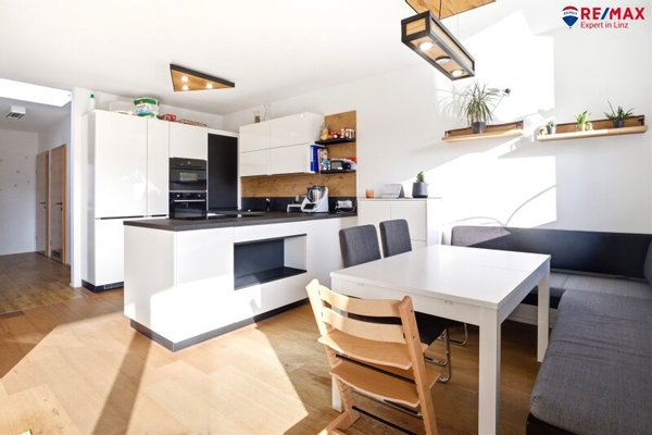 - heller Wohn-, Koch- und Essbereich mit DAN-Küche