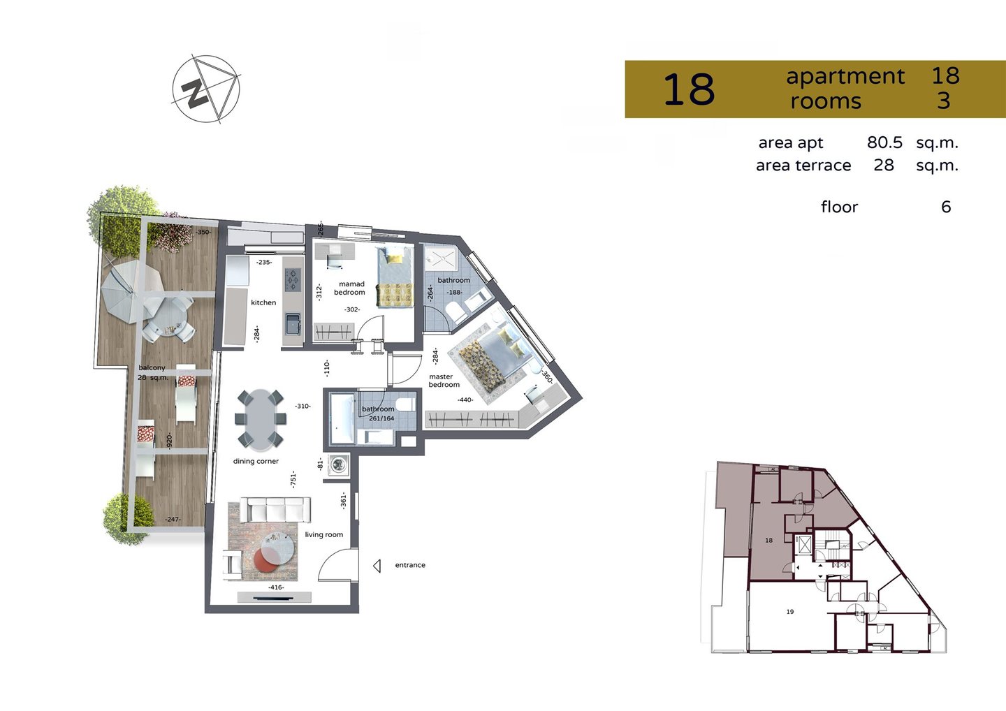 ca. 80–87 m² + ca. 32 m² Terrasse