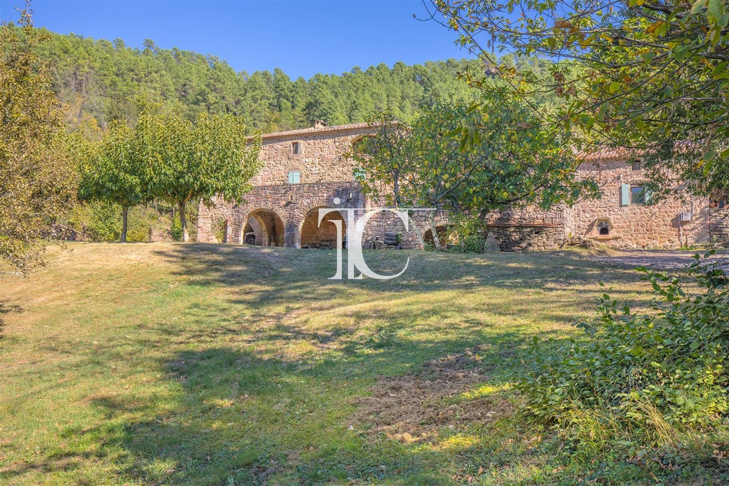 Auf einem bewaldeten Gelände von 10 Hektar ohne jegliche Sichtverbindung erstreckt sich das Hauptgebäude mit ca. 280 m² Wohnfläche, verteilt wie folgt: