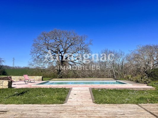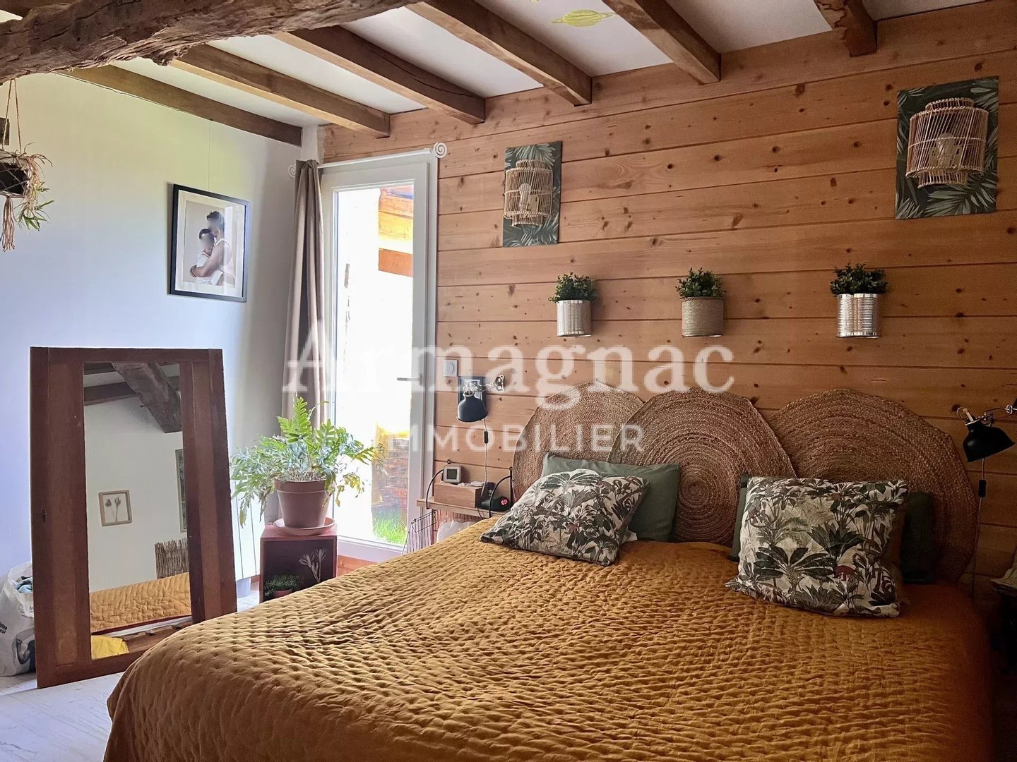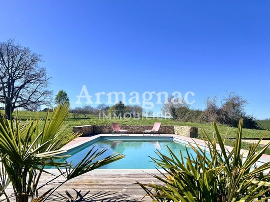 Armagnac-Immobilier bietet Ihnen, im Herzen der Gers-Landschaft und nur 10 Autominuten von Vic-Fezensac entfernt, dieses wunderschöne, rundum renovierte Haus von ca. 230 m², auf zwei Ebenen erbaut, mit Pool und Nebengebäuden, auf einem Grundstück von 3.795 m² gelegen. Von der Eingangsseite an werden Sie von den Volumen und der Helligkeit der Wohnräume verzaubert sein. Das Erdgeschoss öffnet sich zu einem Wohnzimmer, einer Küche sowie einem geselligen Esszimmer mit direktem Zugang zu einer nach Norden ausgerichteten Terrasse, von der ein Teil überdacht ist und sich ideal eignet, die Außenbereiche ganzjährig zu genießen. Diese Ebene umfasst außerdem ein Arbeitszimmer, ein Schlafzimmer mit Ankleide, ein Bad, ein separates WC sowie einen Lagerraum. Im Obergeschoss verbindet ein Treppenabsatz zwei aneinander gereihte Schlafzimmer mit ihrer Ankleide sowie ein Duschbad mit WC. Zum Komfort gehört ein Holzofen und eine reversibel klimatisierbare Klimatisierung, die das ganze Jahr über angenehme Temperaturen garantiert. Im Außenbereich stehen Ihnen zwei getrennte Bereiche zur Verfügung: eine südlich ausgerichtete Terrasse, ideal für sonnige Momente, und eine nördliche Terrasse mit einem 8 x 4 m großen Salzwasserpool sowie einem Boulefeld, perfekt für Entspannung mit Familie oder Freunden. Zahlreiche teilweise renovierte Nebengebäude vervollständigen dieses Objekt und bieten großes Ausbaupotenzial gemäß Ihren Plänen: Garage, Werkstatt, Erstellung von Ferienwohnungen oder andere Aktivitäten. Dieses seltene Objekt ist eine ideale Gelegenheit für Liebhaber von Charme und Authentizität, die eine friedliche Lebensumgebung schätzen und moderne, hochwertige Ausstattungen genießen möchten. Für weitere Informationen kontaktieren Sie Clara.