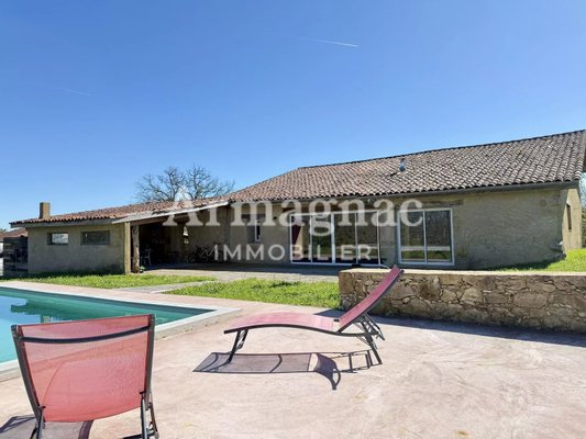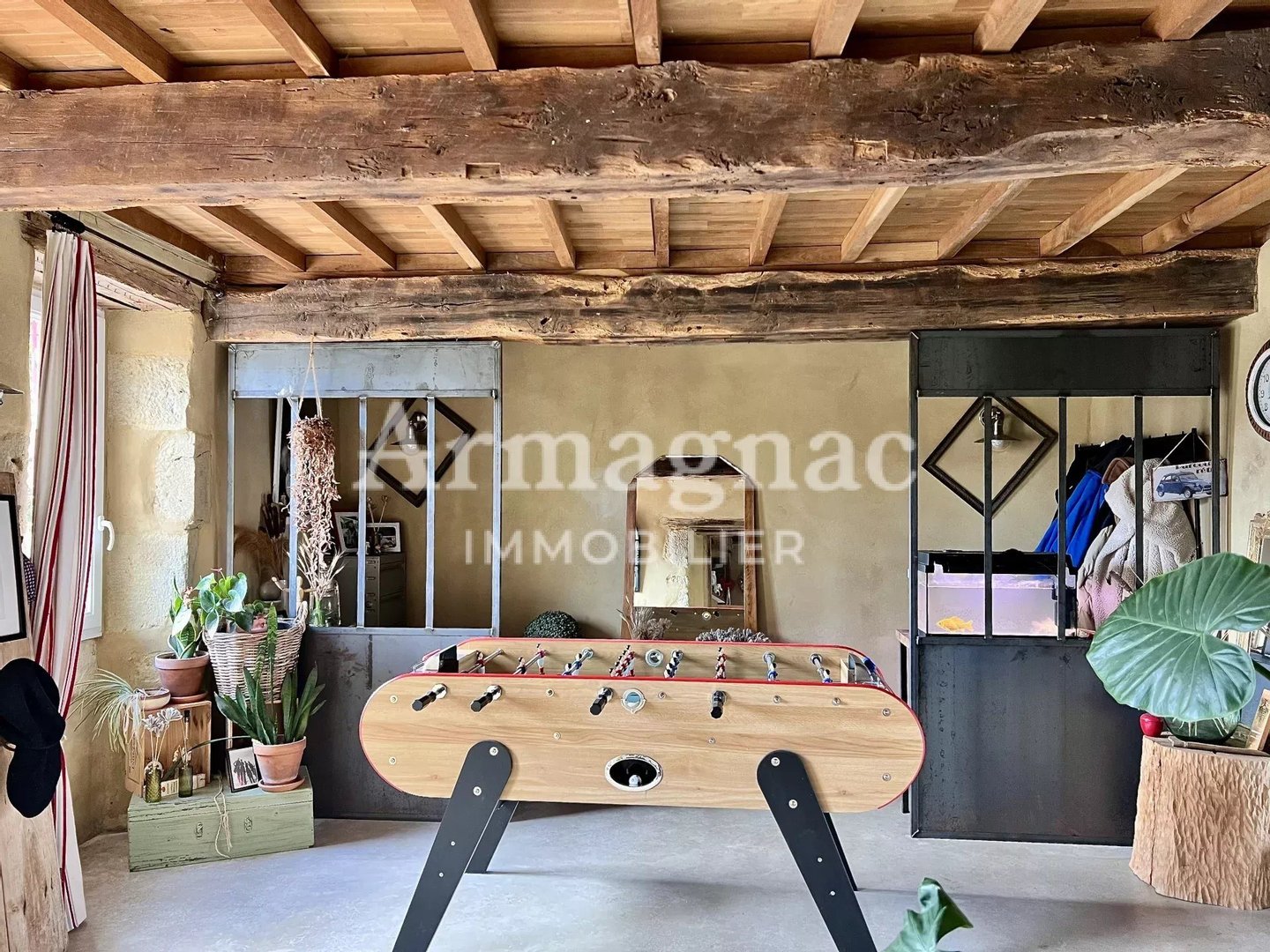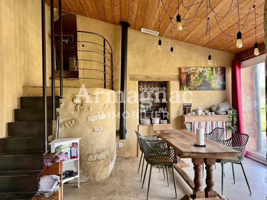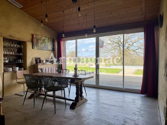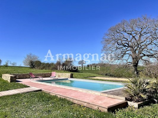 Armagnac-Immobilier bietet Ihnen, im Herzen der Gers-Landschaft und nur 10 Autominuten von Vic-Fezensac entfernt, dieses wunderschöne, rundum renovierte Haus von ca. 230 m², auf zwei Ebenen erbaut, mit Pool und Nebengebäuden, auf einem Grundstück von 3.795 m² gelegen. Von der Eingangsseite an werden Sie von den Volumen und der Helligkeit der Wohnräume verzaubert sein. Das Erdgeschoss öffnet sich zu einem Wohnzimmer, einer Küche sowie einem geselligen Esszimmer mit direktem Zugang zu einer nach Norden ausgerichteten Terrasse, von der ein Teil überdacht ist und sich ideal eignet, die Außenbereiche ganzjährig zu genießen. Diese Ebene umfasst außerdem ein Arbeitszimmer, ein Schlafzimmer mit Ankleide, ein Bad, ein separates WC sowie einen Lagerraum. Im Obergeschoss verbindet ein Treppenabsatz zwei aneinander gereihte Schlafzimmer mit ihrer Ankleide sowie ein Duschbad mit WC. Zum Komfort gehört ein Holzofen und eine reversibel klimatisierbare Klimatisierung, die das ganze Jahr über angenehme Temperaturen garantiert. Im Außenbereich stehen Ihnen zwei getrennte Bereiche zur Verfügung: eine südlich ausgerichtete Terrasse, ideal für sonnige Momente, und eine nördliche Terrasse mit einem 8 x 4 m großen Salzwasserpool sowie einem Boulefeld, perfekt für Entspannung mit Familie oder Freunden. Zahlreiche teilweise renovierte Nebengebäude vervollständigen dieses Objekt und bieten großes Ausbaupotenzial gemäß Ihren Plänen: Garage, Werkstatt, Erstellung von Ferienwohnungen oder andere Aktivitäten. Dieses seltene Objekt ist eine ideale Gelegenheit für Liebhaber von Charme und Authentizität, die eine friedliche Lebensumgebung schätzen und moderne, hochwertige Ausstattungen genießen möchten. Für weitere Informationen kontaktieren Sie Clara.