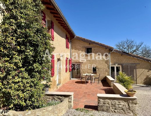 Armagnac-Immobilier bietet Ihnen, im Herzen der Gers-Landschaft und nur 10 Autominuten von Vic-Fezensac entfernt, dieses wunderschöne, rundum renovierte Haus von ca. 230 m², auf zwei Ebenen erbaut, mit Pool und Nebengebäuden, auf einem Grundstück von