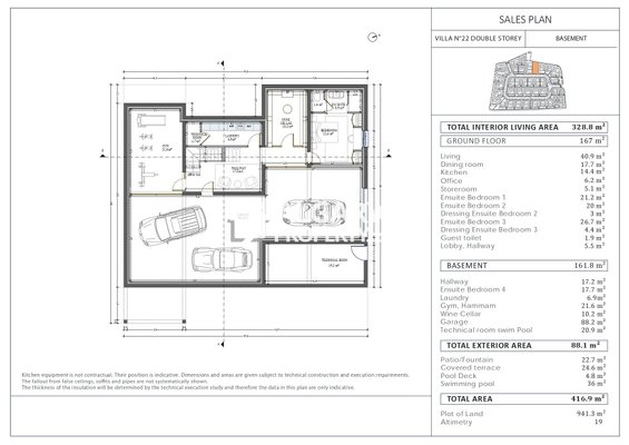 Die nach Südost ausgerichtete Villa hat eine Fläche von 545 m² bei einem Grundstück von 941 m² und verfügt über einen eigenen privaten Pool mit einem Pooldeck, flankiert von üppigen mediterranen Gärten. Die Villa bietet großzügige, elegant gestaltete Räume, die umfangreichen Raum und Komfort garantieren.