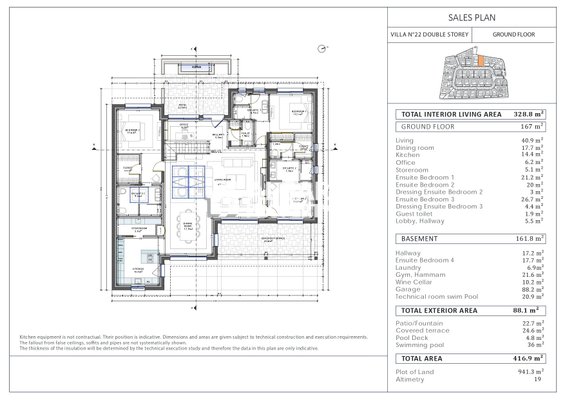 Die nach Südost ausgerichtete Villa hat eine Fläche von 545 m² bei einem Grundstück von 941 m² und verfügt über einen eigenen privaten Pool mit einem Pooldeck, flankiert von üppigen mediterranen Gärten. Die Villa bietet großzügige, elegant gestaltete Räume, die umfangreichen Raum und Komfort garantieren.