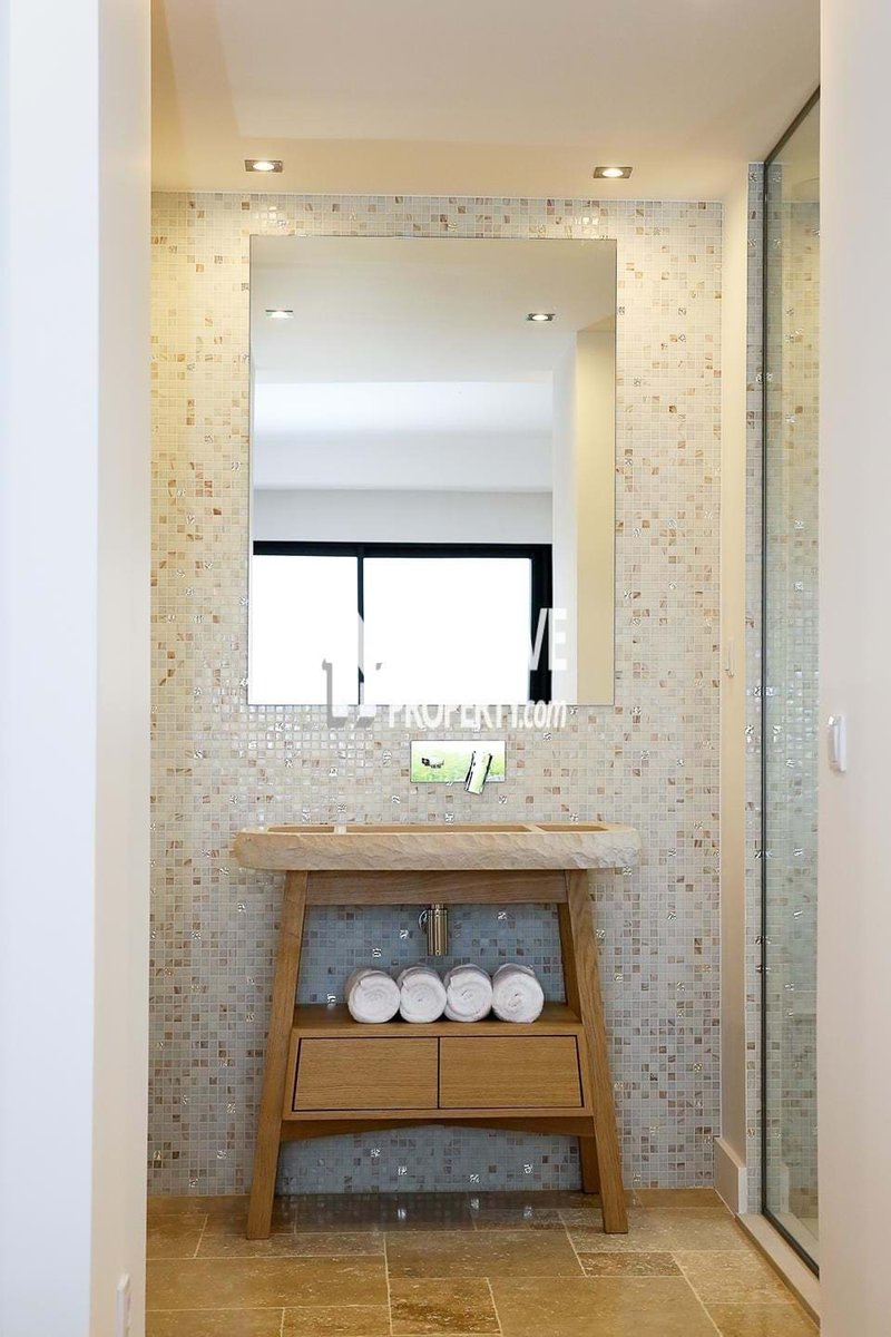 Das ostsüdostlich ausgerichtete Haus hat eine Fläche von 466 m² auf einem Grundstück von 735 m² und umfasst einen eigenen privaten Pool mit Pooldeck inmitten üppiger mediterraner Gärten. Die Villa bietet großzügige, elegant gestaltete Räume, die Weite und Komfort gewährleisten.