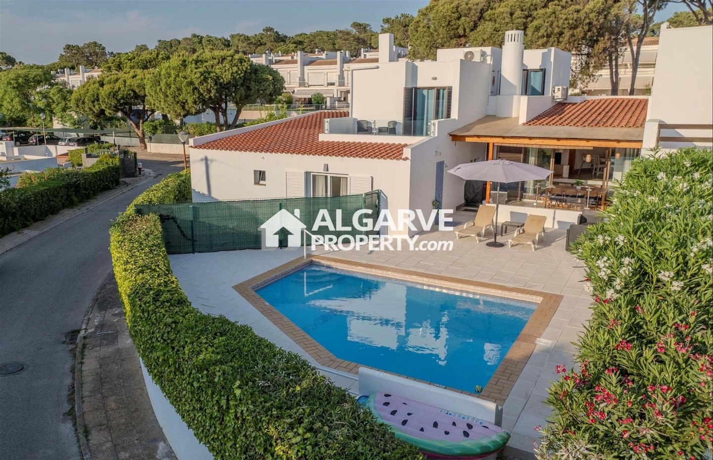 Villa mit Pool und Golfblick in Vilamoura, auf einem Grundstück von 334 m² gelegen, nur 10 Minuten vom Strand und vom Yachthafen entfernt. Ruhige Lage in der Nähe aller Annehmlichkeiten.
