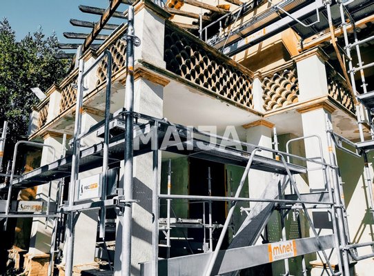The villa is being restored and modernized by the developer. Additionally, a parking area of 28 m² and an entrance to the villa premises will be created, along with a 55 m² terrace. The building facade will also be updated, and the villa's interior will be modernized and restored.