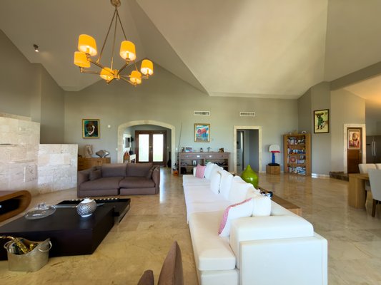 Der weitläufige, offene Wohnbereich zeichnet sich durch gewölbte Decken und bodentiefes Glas aus, sodass natürliches Licht und Meeresbrisen mühelos durch den Raum fließen.Zwei großzügige Terrassen am Meer sorgen für ein nahtloses Leben innen und draußen – ideal für: