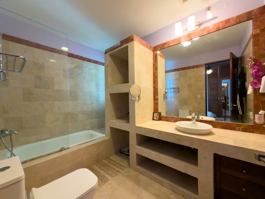 Geräumiges Badezimmer mit eigenem Bad und Jacuzzi