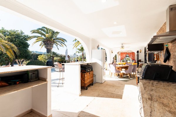 Nur wenige Minuten vom Stadtzentrum und der Küste entfernt, stellt dieses makellose, renovierte Anwesen das perfekte Gleichgewicht zwischen dem Charme des spanischen Landes und der Funktionalität einer modernen, hochwertigen Renovierung dar. Der Zugang zur Immobilie, sei es über den Fußweg oder durch die elektrischen Tore, führt zu einem großzügigen Parkplatz mit überdachten Stellplätzen für vier Fahrzeuge, was die Weitläufigkeit und Ordnung, die das gesamte Grundstück prägen, bereits antizipiert.
