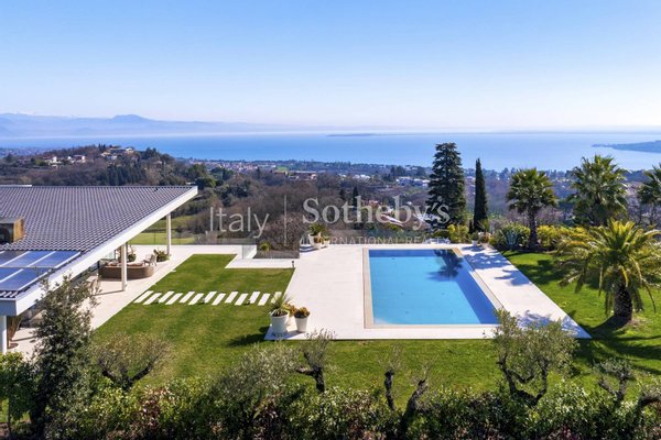 A property where the lake becomes an integral part of everyday living, thanks to expansive panoramic windows and an extraordinary view stretching across the entire southern shore of Lake Garda to Monte Baldo.Located in the panoramic hills of