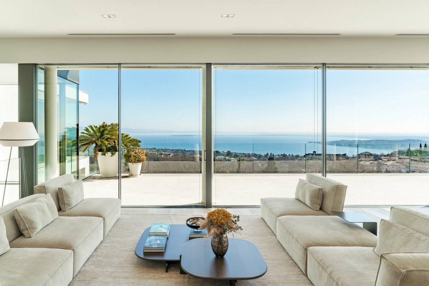 A property where the lake becomes an integral part of everyday living, thanks to expansive panoramic windows and an extraordinary view stretching across the entire southern shore of Lake Garda to Monte Baldo.