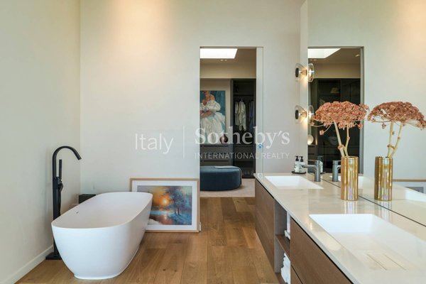 Particular attention has been dedicated to energy efficiency, with a 24 kW photovoltaic system with battery storage, underfloor heating powered by pellet boilers, air conditioning with heat pump and a private well supplying the property with water.