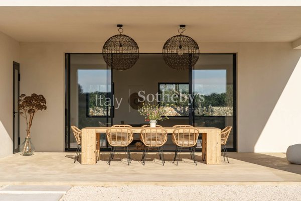 Contemporary villa located in the heart of the Itria Valley, designed by a renowned architectural firm and set within approximately one hectare of centuries-old olive grove.The property is just 10 minutes from Ostuni and en