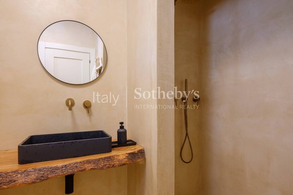 Outside, there is a stunning 16-meter infinity pool overlooking the valley, surrounded by Mediterranean vegetation, as well as a panoramic terrace of 40 sqm with 360° views over the Itria Valley landscape. The villa is also equipped with a photovoltaic system and a security system with alarm and surveillance cameras.