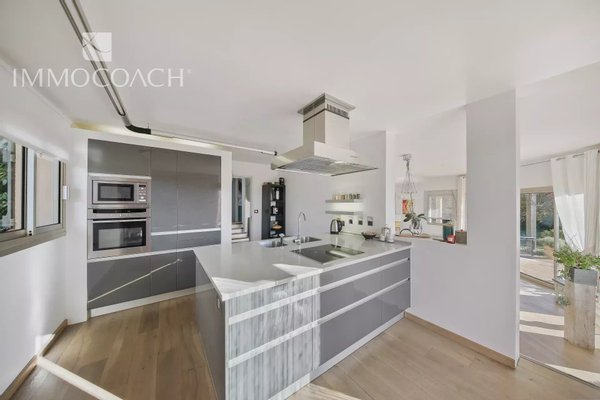 In einer gefragten Wohngegend, auf einem schönen, sehr gepflegten Grundstück gelegen, bietet diese Villa einen schönen, ebenerdigen Wohnraum mit dem Außenbereich. Sonnenverwöhnt, mit verschiedenen gestalteten Bereichen, um jeden Moment voll zu genießen. Drei Schlafzimmer, davon zwei mit Empore, zwei Badezimmer. Möglichkeit zur Schaffung eines eigenständigen Studios. Waschküche, Garage von 40 m², Werkstatt.