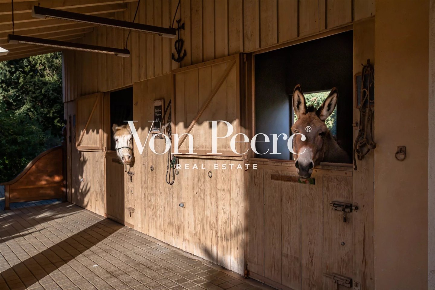 Für Reit- und Tierliebhaber verfügt das Anwesen über Stallungen und weite Weiden, die Pferde und andere vierbeinige Begleiter unter optimalen Bedingungen aufnehmen.