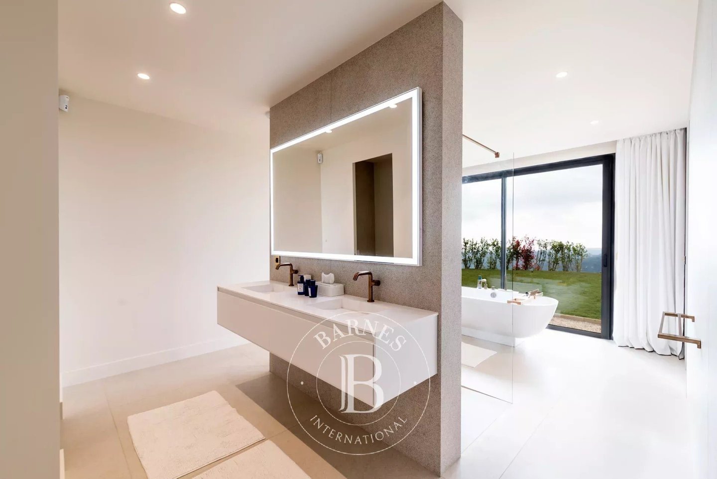 Außergewöhnliche Lage in absoluter Ruhe und ohne vis-a-vis in bevorzugter Hanglage, im Herzen eines sehr begehrten Wohngebietes, moderne Neubauvilla ca. 575 m² mit atemberaubendem Blick auf das Meer und die umliegenden Hügel, erbaut auf einem 2.805 m² großen Grundstück. Sie umfasst einen großzügigen, lichtdurchfluteten Empfangsbereich, offene Küche mit Abstellraum, ein geräumiges Hauptschlafzimmer mit Ankleidebereich und Ensuite-Bad, 5 weitere Schlafzimmer mit Ankleidebereich, davon eines als Kino eingerichtet. Keller mit Spielzimmer, Fitnessraum, Dusche und WC, Weinkeller, Reserve, Technikraum und EG-Gartenebene, eine unabhängige 2-Zimmer-Wohnung mit Wohn-/Küchenbereich, Schlafzimmer und Duschbad. Großer Garagenbereich und mehrere Parkplätze. Einzigartige Immobilie auf dem Markt. Energieklasse: A – Klima Klasse: A / geschätzte Jahresenergieausgaben für Standardnutzung: 1.557 € bis 2.106 € (Referenzjahr 2023) Informationen zu den Risiken dieses Objekts finden Sie auf der Géorisques-Website: Gut gelegen in einer Zone mit Abholzungspflicht. Solarzellen – Villa autark. Informationen zu den Risiken dieses Objekts finden Sie auf der Géorisques-Website: Gut gelegen in einer Zone mit Abholzungspflicht.