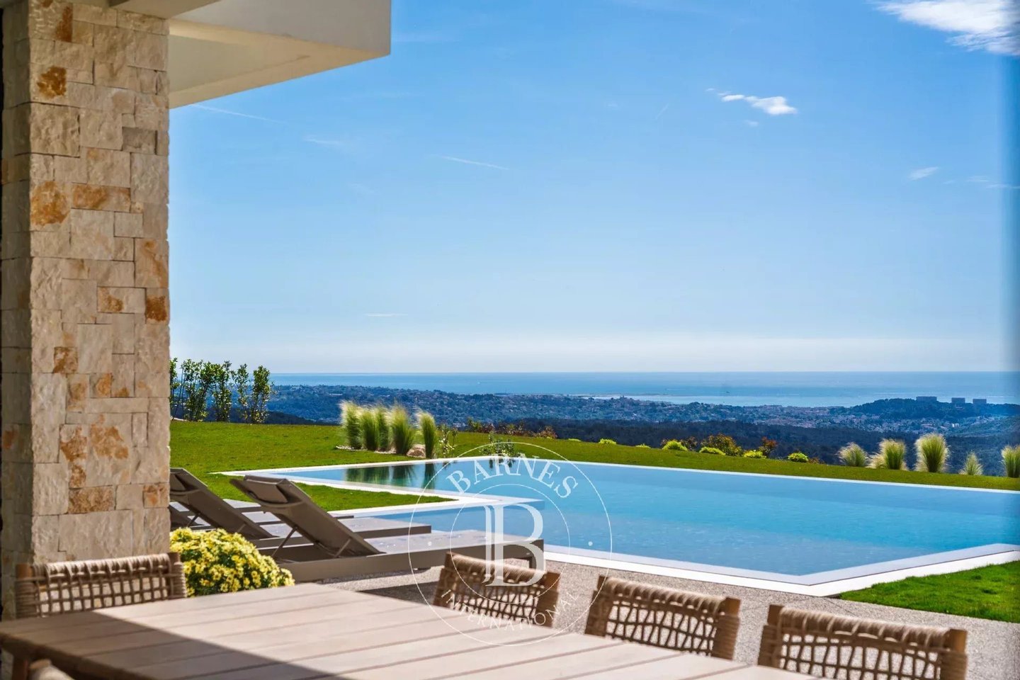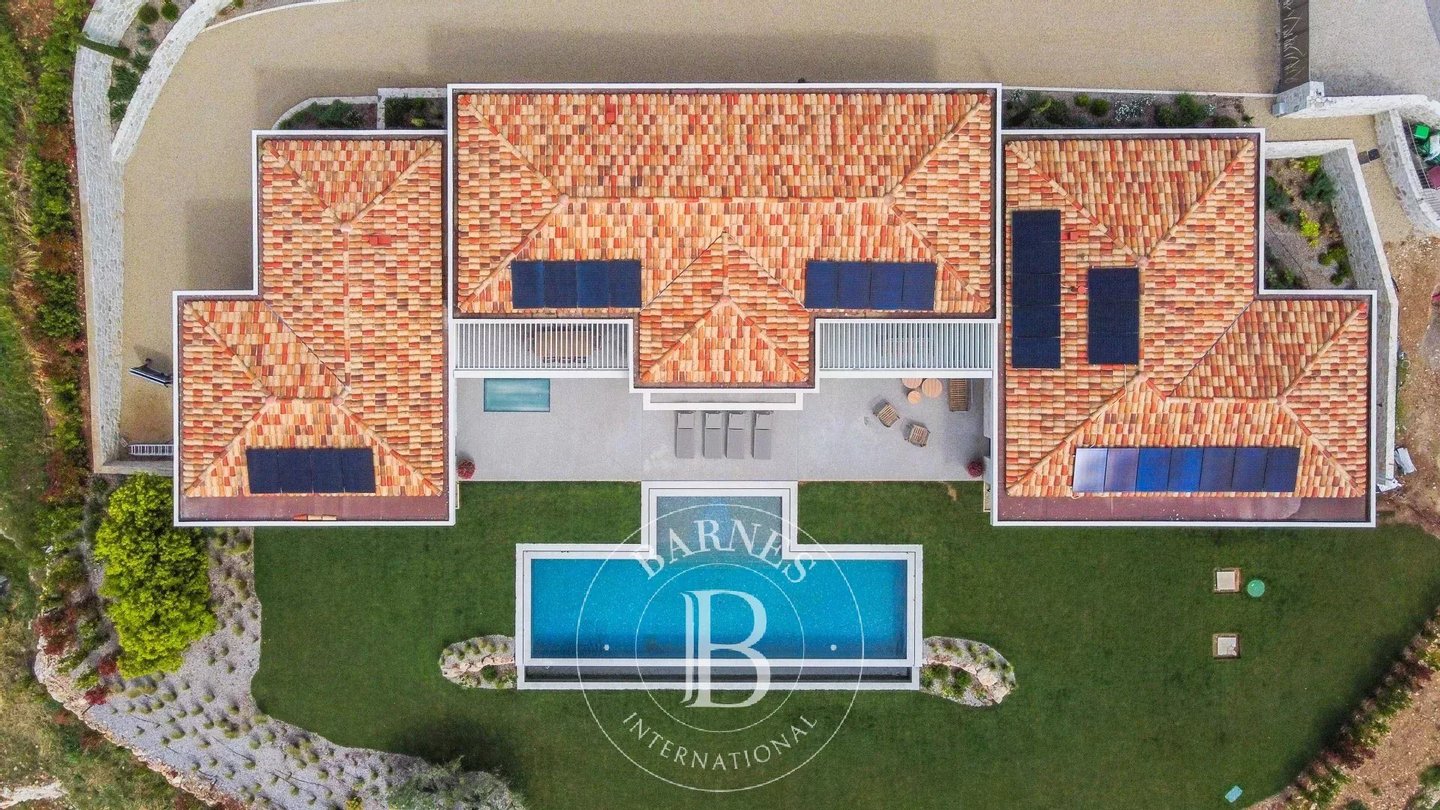 Außergewöhnliche Lage in absoluter Ruhe und ohne vis-a-vis in bevorzugter Hanglage, im Herzen eines sehr begehrten Wohngebietes, moderne Neubauvilla ca. 575 m² mit atemberaubendem Blick auf das Meer und die umliegenden Hügel, erbaut auf einem 2.805 m² großen Grundstück. Sie umfasst einen großzügigen, lichtdurchfluteten Empfangsbereich, offene Küche mit Abstellraum, ein geräumiges Hauptschlafzimmer mit Ankleidebereich und Ensuite-Bad, 5 weitere Schlafzimmer mit Ankleidebereich, davon eines als Kino eingerichtet. Keller mit Spielzimmer, Fitnessraum, Dusche und WC, Weinkeller, Reserve, Technikraum und EG-Gartenebene, eine unabhängige 2-Zimmer-Wohnung mit Wohn-/Küchenbereich, Schlafzimmer und Duschbad. Großer Garagenbereich und mehrere Parkplätze. Einzigartige Immobilie auf dem Markt. Energieklasse: A – Klima Klasse: A / geschätzte Jahresenergieausgaben für Standardnutzung: 1.557 € bis 2.106 € (Referenzjahr 2023) Informationen zu den Risiken dieses Objekts finden Sie auf der Géorisques-Website: Gut gelegen in einer Zone mit Abholzungspflicht. Solarzellen – Villa autark. Informationen zu den Risiken dieses Objekts finden Sie auf der Géorisques-Website: Gut gelegen in einer Zone mit Abholzungspflicht.