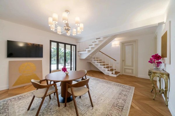 4 Schlafzimmer, großes Wohnzimmer mit Kamin und Esszimmer, das zum Garten und zur Terrasse offen ist, 2 große Schlafzimmer, 2 Badezimmer, Büro, Gäste-WC. Garten-Etage: eigenständige Küche ausgestattet, Esszimmer, 2 große Schlafzimmer mit Badezimmern und Ankleidezimmer. Unabhängiges Studio mit Küche und Bad. Bushaltestellen 600 m, 2 Gehminuten, 10 Minuten nach Monaco. Neuwertig.