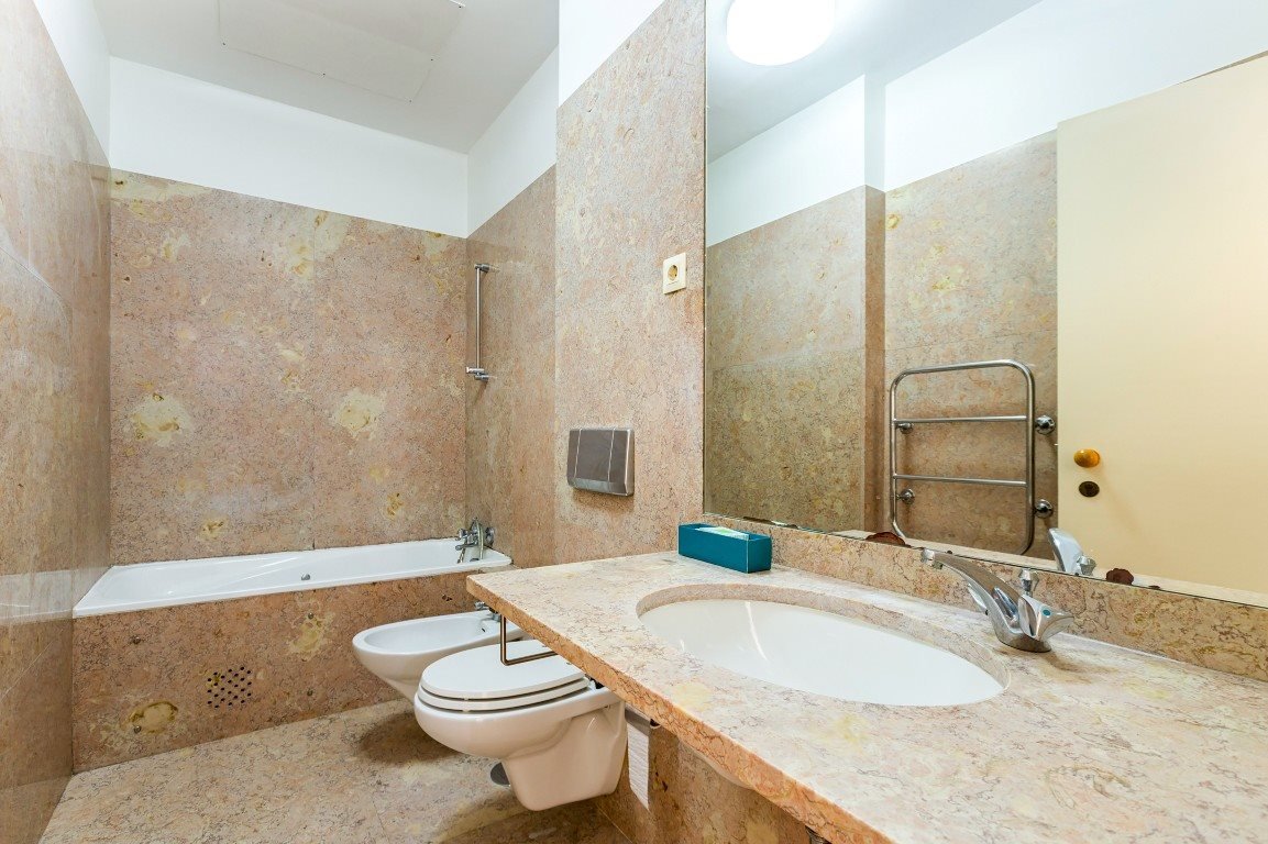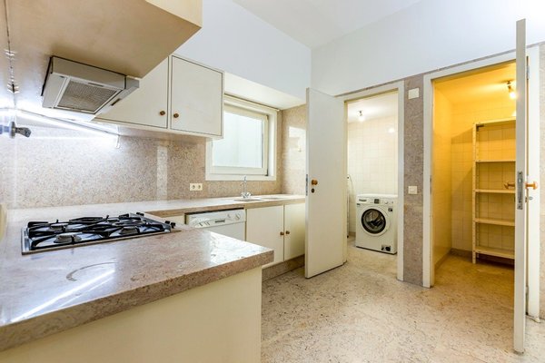 Die Wohnung verfügt über ein geräumiges Schlafzimmer, ein helles und luftiges Wohnzimmer, ein komplettes Badezimmer und eine große Küche mit Waschraum und Speisekammer. Sowohl Wohnzimmer als auch Schlafzimmer profitieren von großen Fenstern, die die Innenräume mit Tageslicht durchfluten. Die Wohnung befindet sich im vierten Stock und genießt ausgezeichnete Sonneneinstrahlung sowie eine ruhige Atmosphäre.