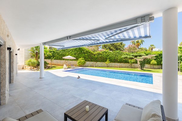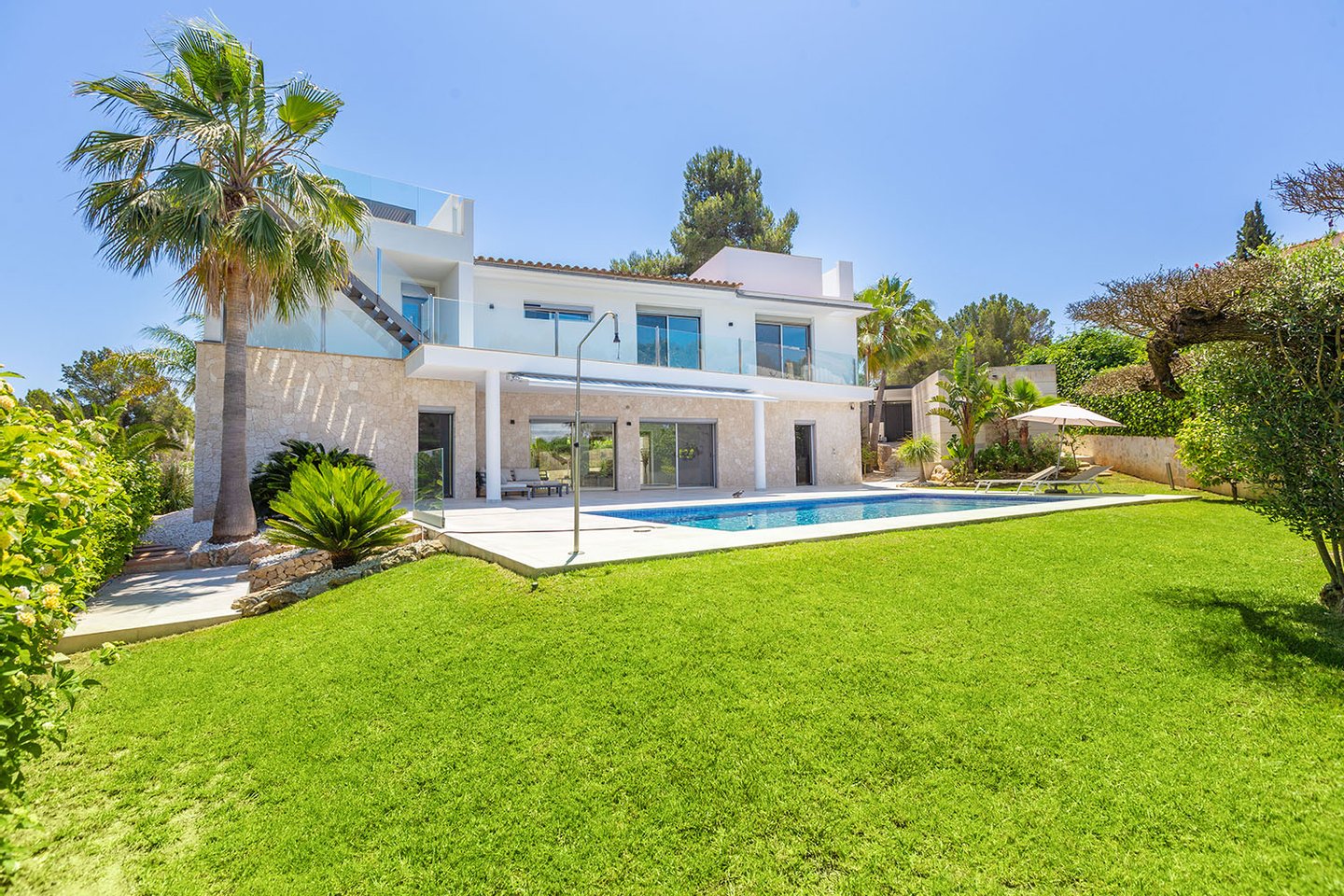 Diese moderne Villa liegt in einer der begehrtesten Wohngegenden von Santa Ponsa. In ruhiger Lage am Ende einer kleinen Anliegerstraße genießt man hier eine grüne Umgebung mit Nähe zur Küste sowie einen pflegeleicht angelegten, mediterranen Garten,