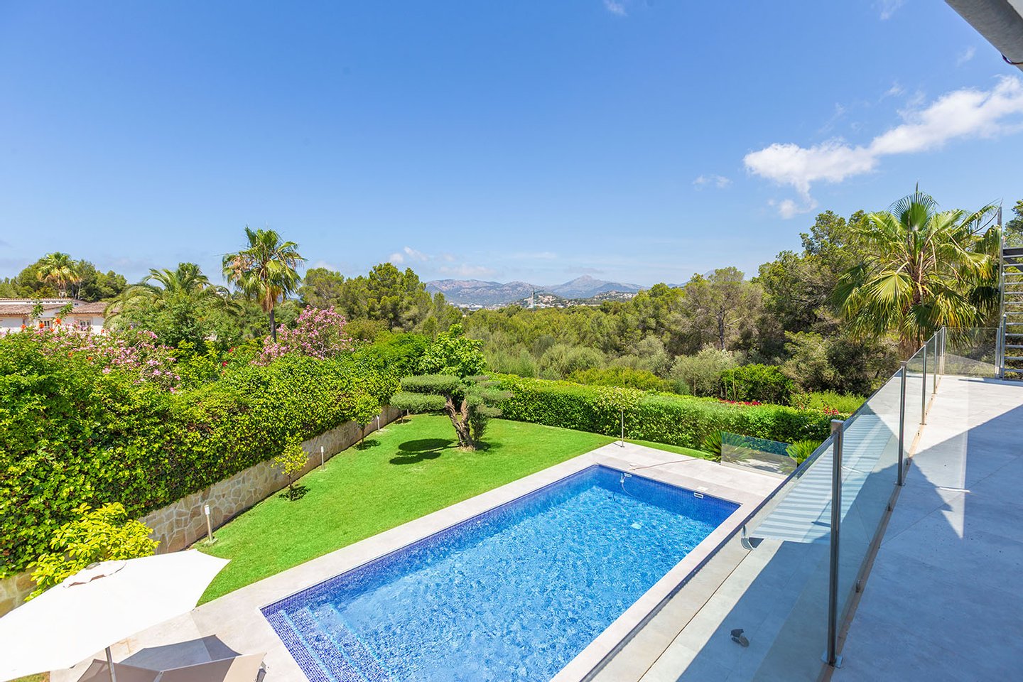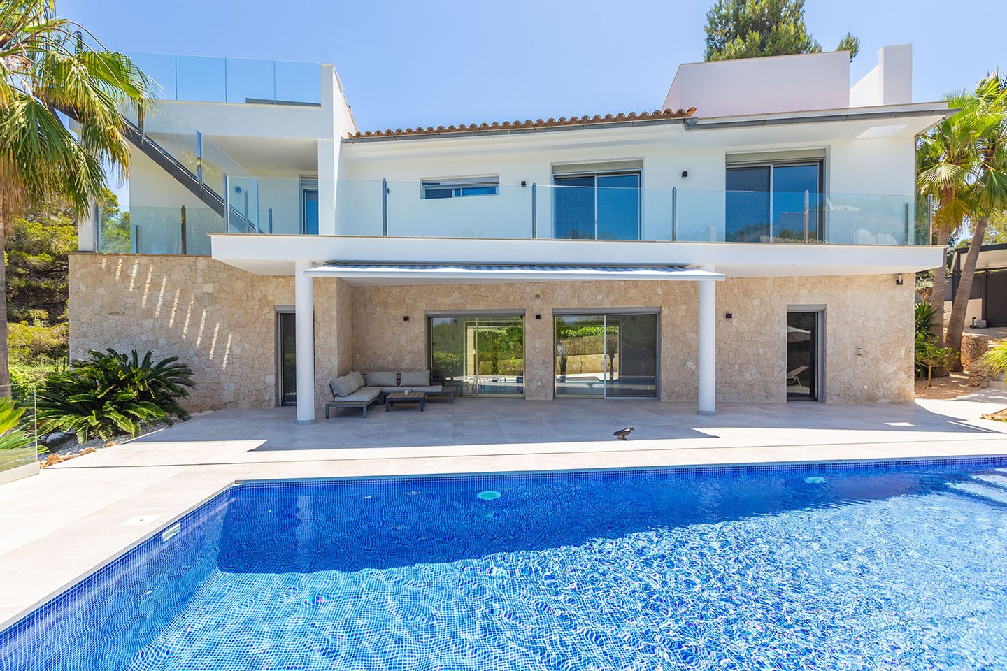 Diese moderne Villa liegt in einer der begehrtesten Wohngegenden von Santa Ponsa. In ruhiger Lage am Ende einer kleinen Anliegerstraße genießt man hier eine grüne Umgebung mit Nähe zur Küste sowie einen pflegeleicht angelegten, mediterranen Garten, der sich harmonisch in das Gesamtbild einfügt. Das lebendige Zentrum des Ortes ist nur etwa 1,5 Kilometer entfernt und bietet eine hervorragende Infrastruktur mit vielfältigen Einkaufsmöglichkeiten, Restaurants, medizinischen Einrichtungen und zahlreichen Dienstleistungsangeboten.