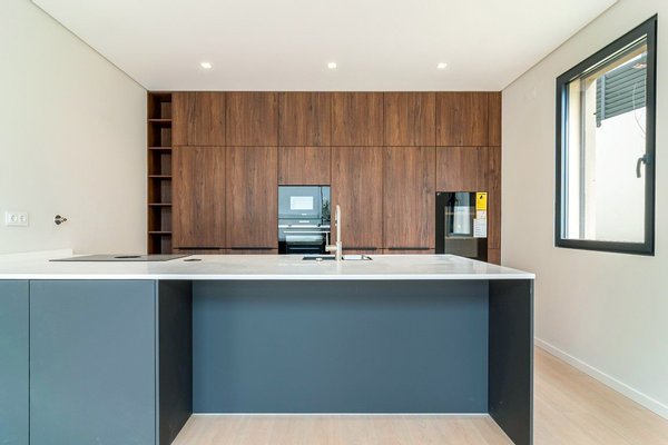 Sorgfältig gestaltet, erstrecken sich jede Villa über zwei Etagen, einen Keller und eine Dachterrasse. Das Erdgeschoss umfasst eine Eingangshalle, die zu einem geräumigen Wohn- und Essbereich mit Kamin führt, der auf große Terrassen, den Garten und den Pool öffnet. Die voll ausgestattete offene Küche mit Insel fügt sich nahtlos in den sozialen Bereich ein. Diese Ebene beinhaltet zudem eine Suite und ein Gäste-WC.
