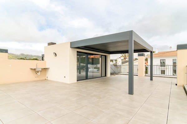 Die Dachterrasse bietet Panoramablick und eine Freizeitfläche mit Grill, ideal für Unterhaltungen.